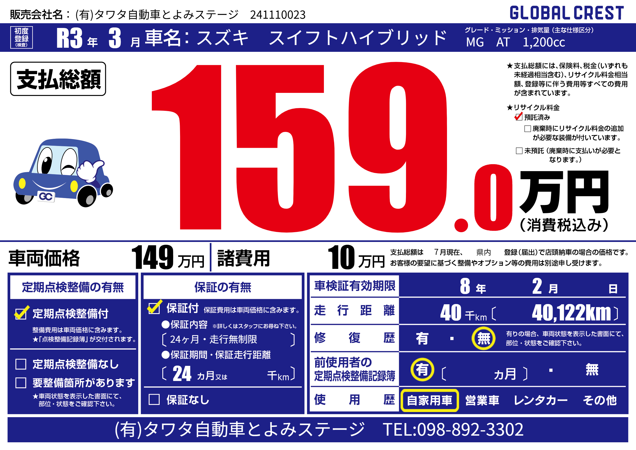 | 定期点検整備 | 定期点検整備あり | ||