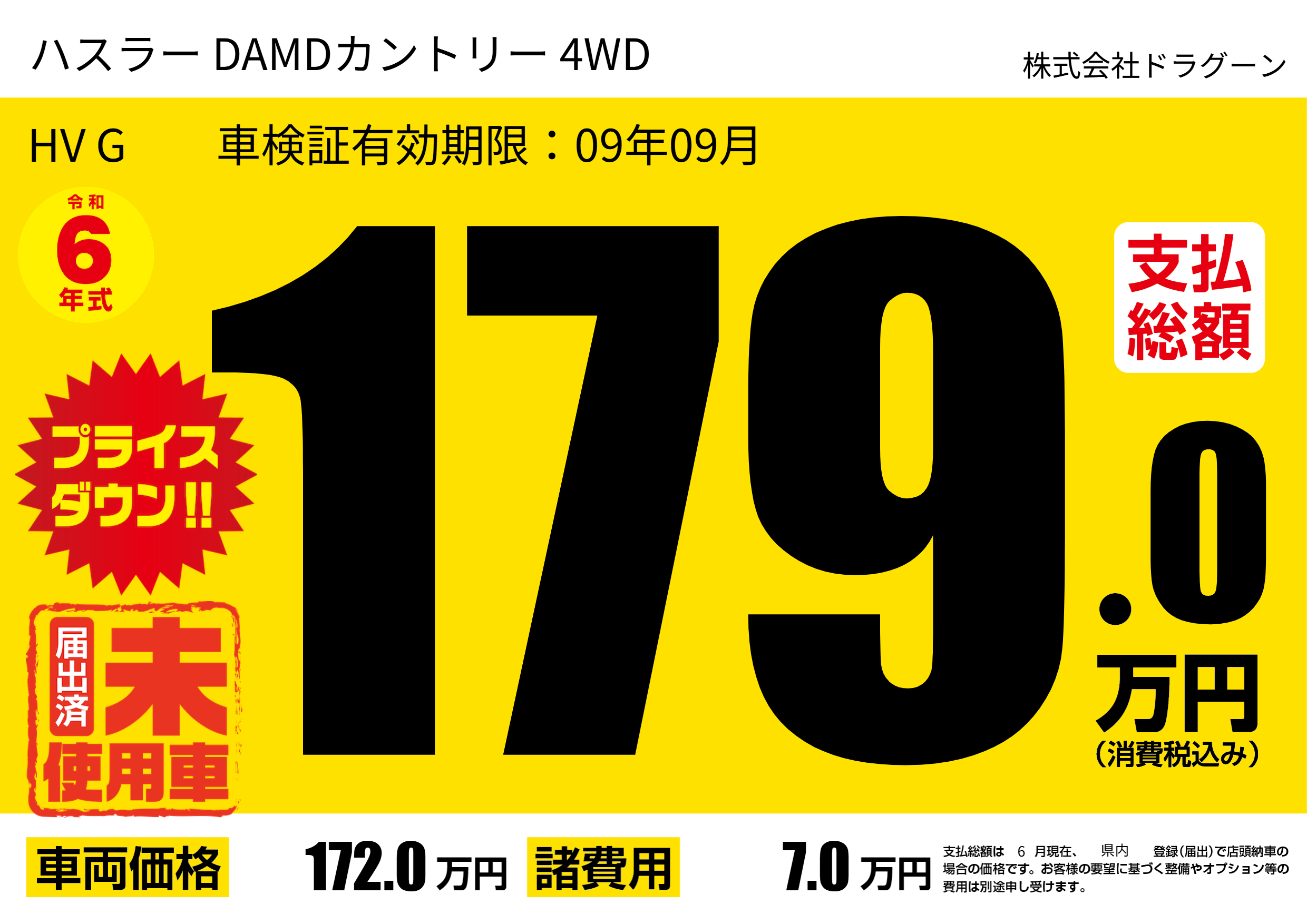| 車名 | ハスラー DAMDカントリー 4WD | グレード ミッション 排気量 |