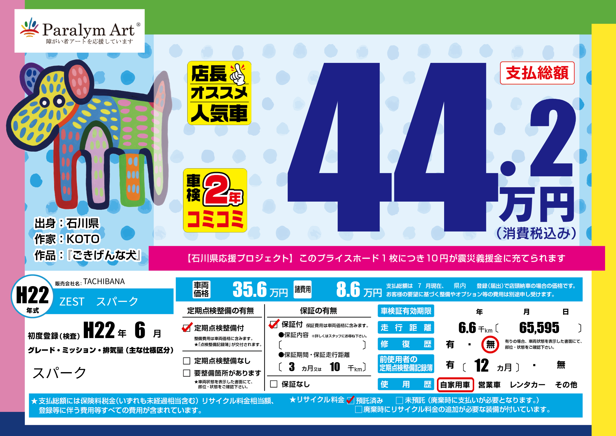 | 車名 | ZEST スパーク | グレード ミッション 排気量 |