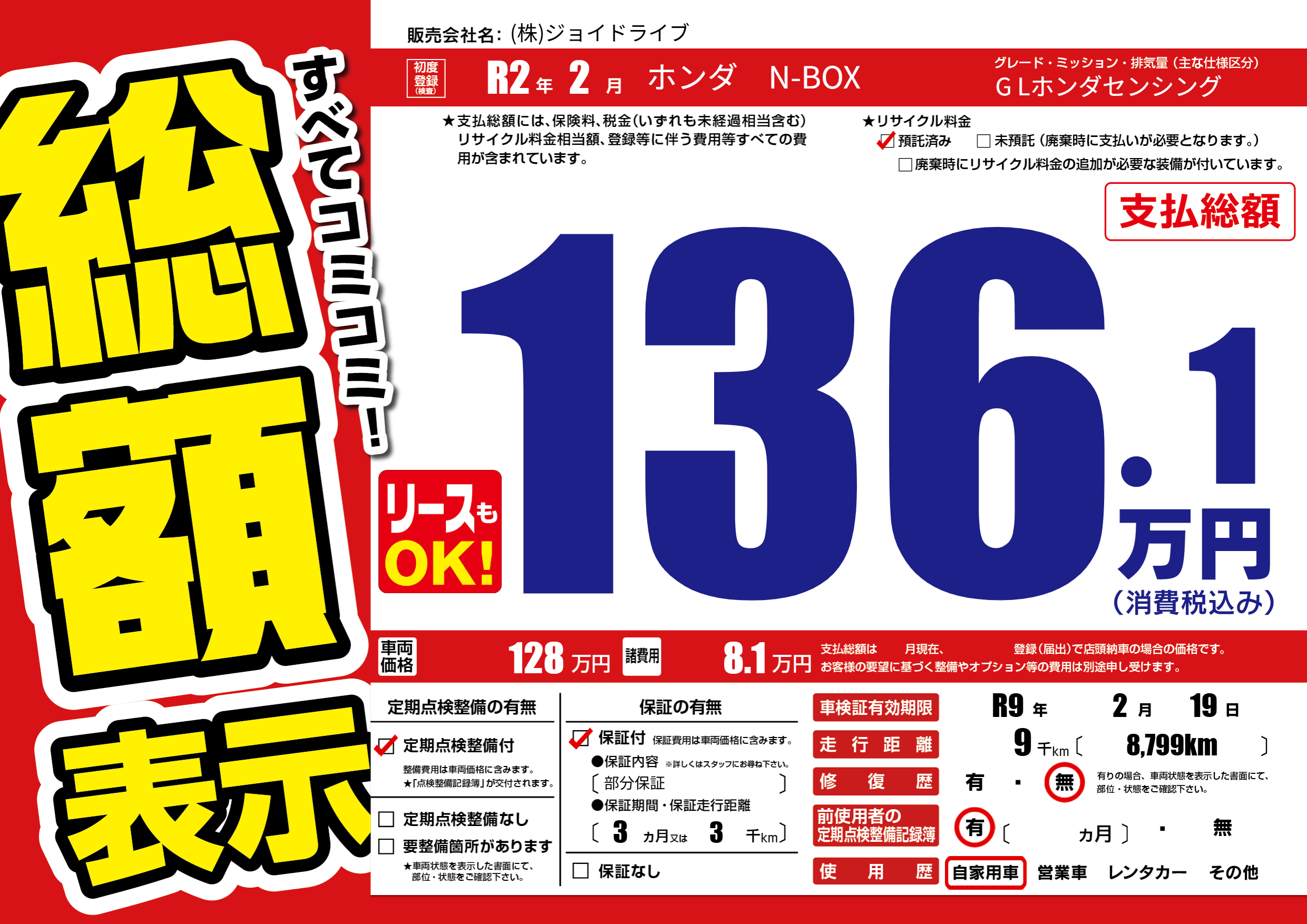 なし | 車検制限 | R9年2月19月 |