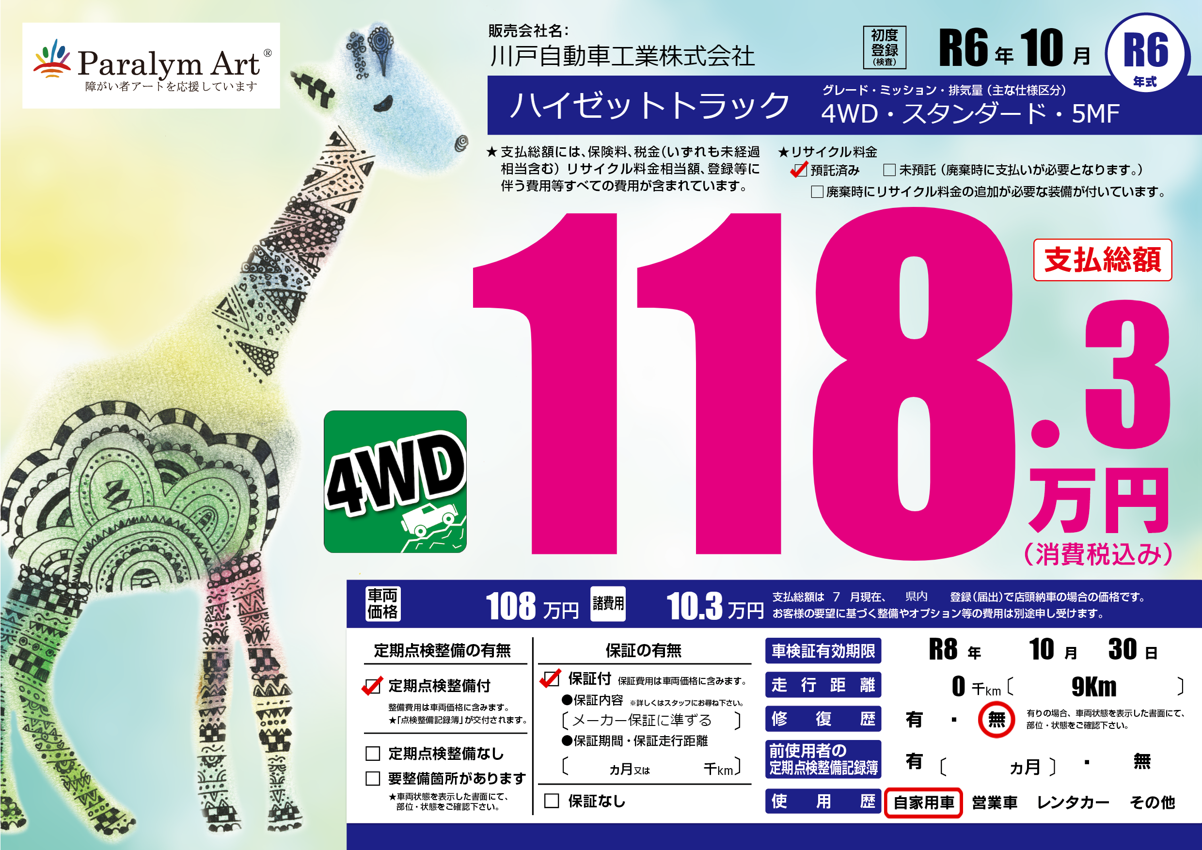 | 車名 | ハイゼットトラック | グレード ミッション 排気量 |