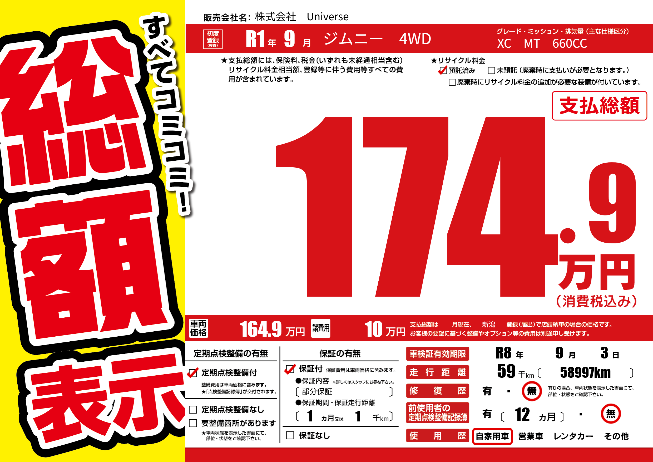 なし | 車検制限 | R8年9月3月 |
