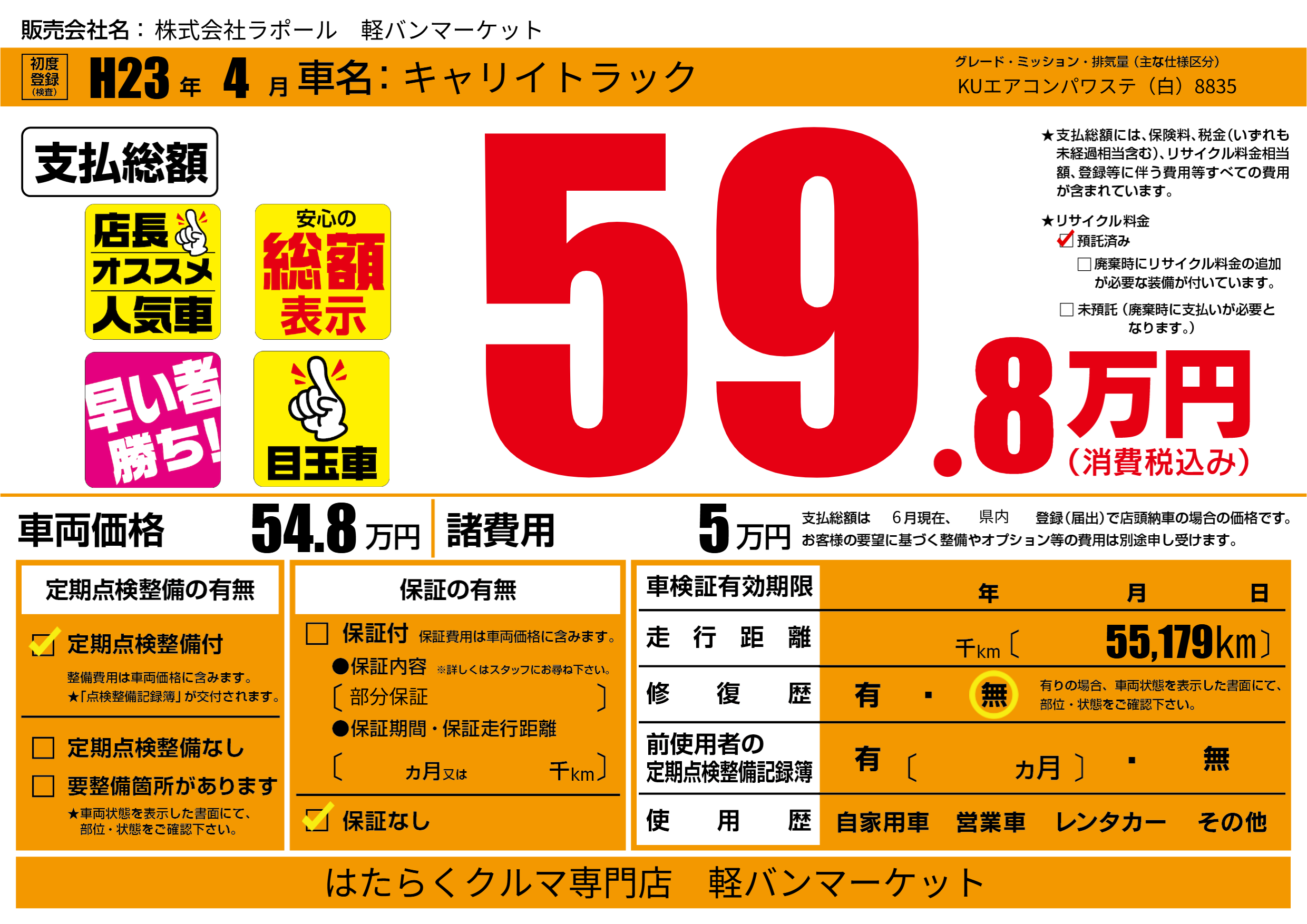 | 走行キロ | - | 初年度登録 | H23年4月 |