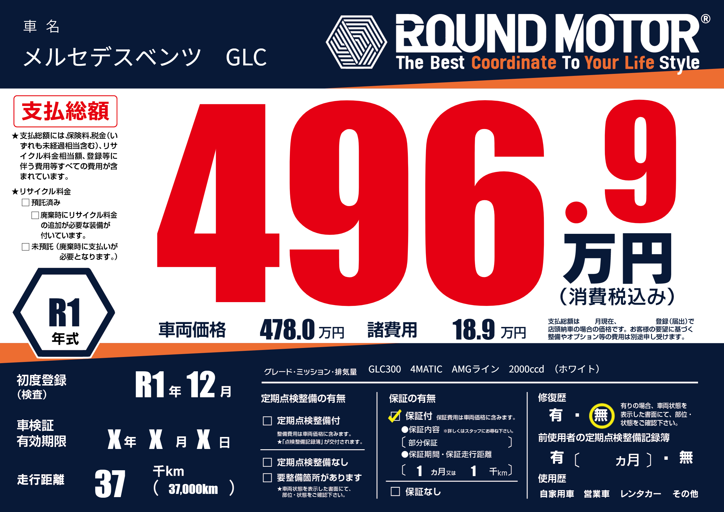 GLC300 4MATIC AMGライン 2000ccd (ホワイト) |