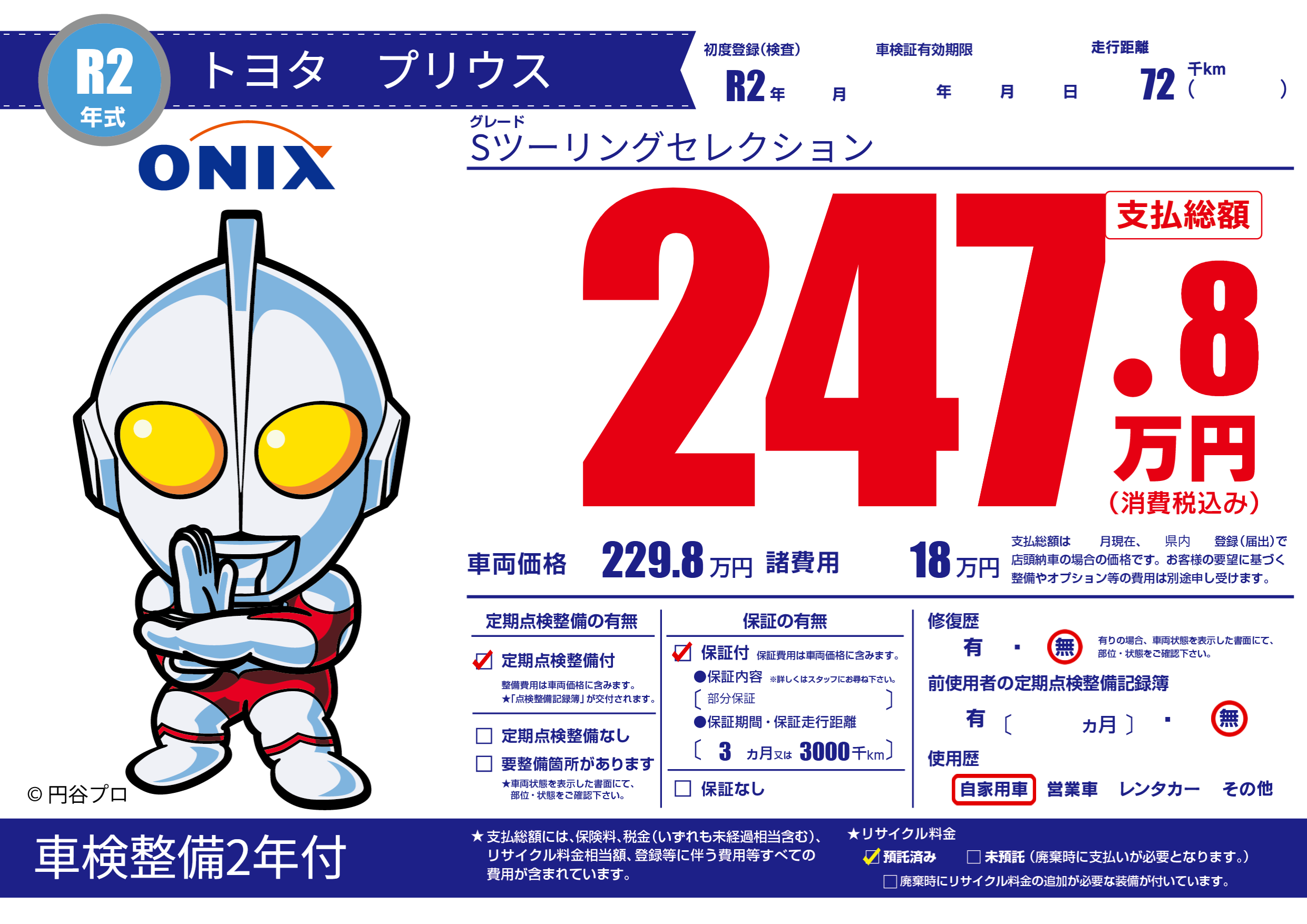 | 車名 | トヨタ プリウス | グレード ミッション 排気量 |