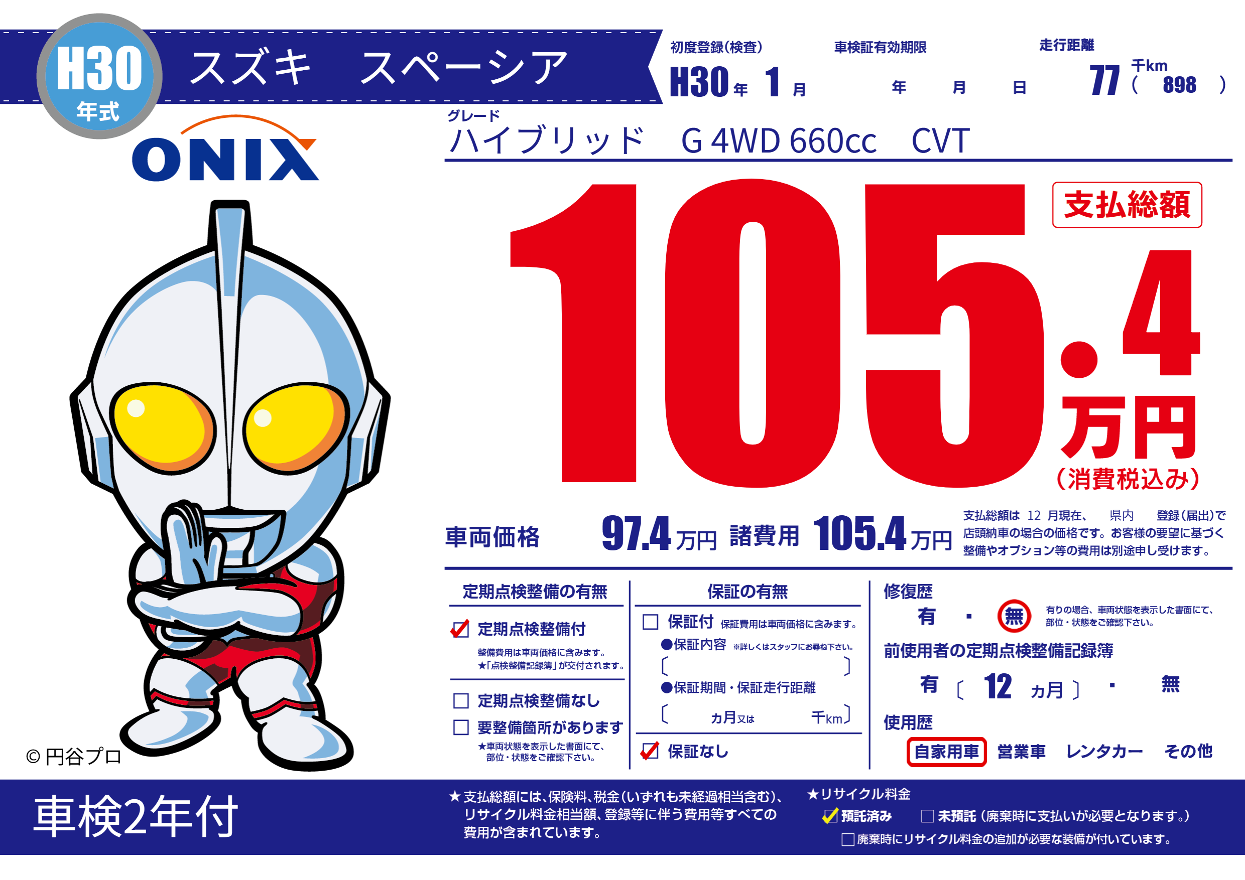 | 車名 | スズキ スペーシア | グレード ミッション 排気量 |