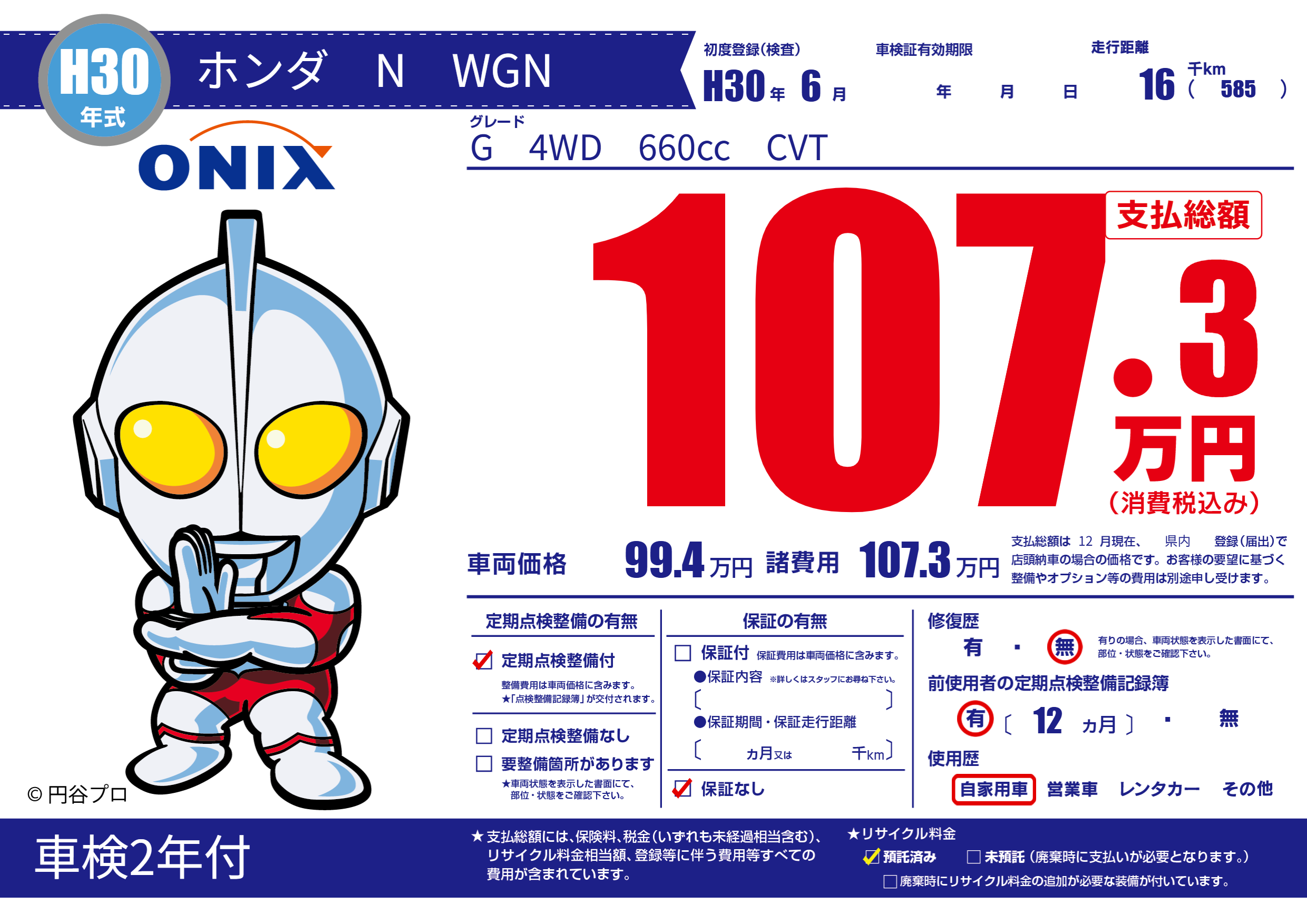 | 車名 | ホンダ N WGN | グレード ミッション 排気量 |