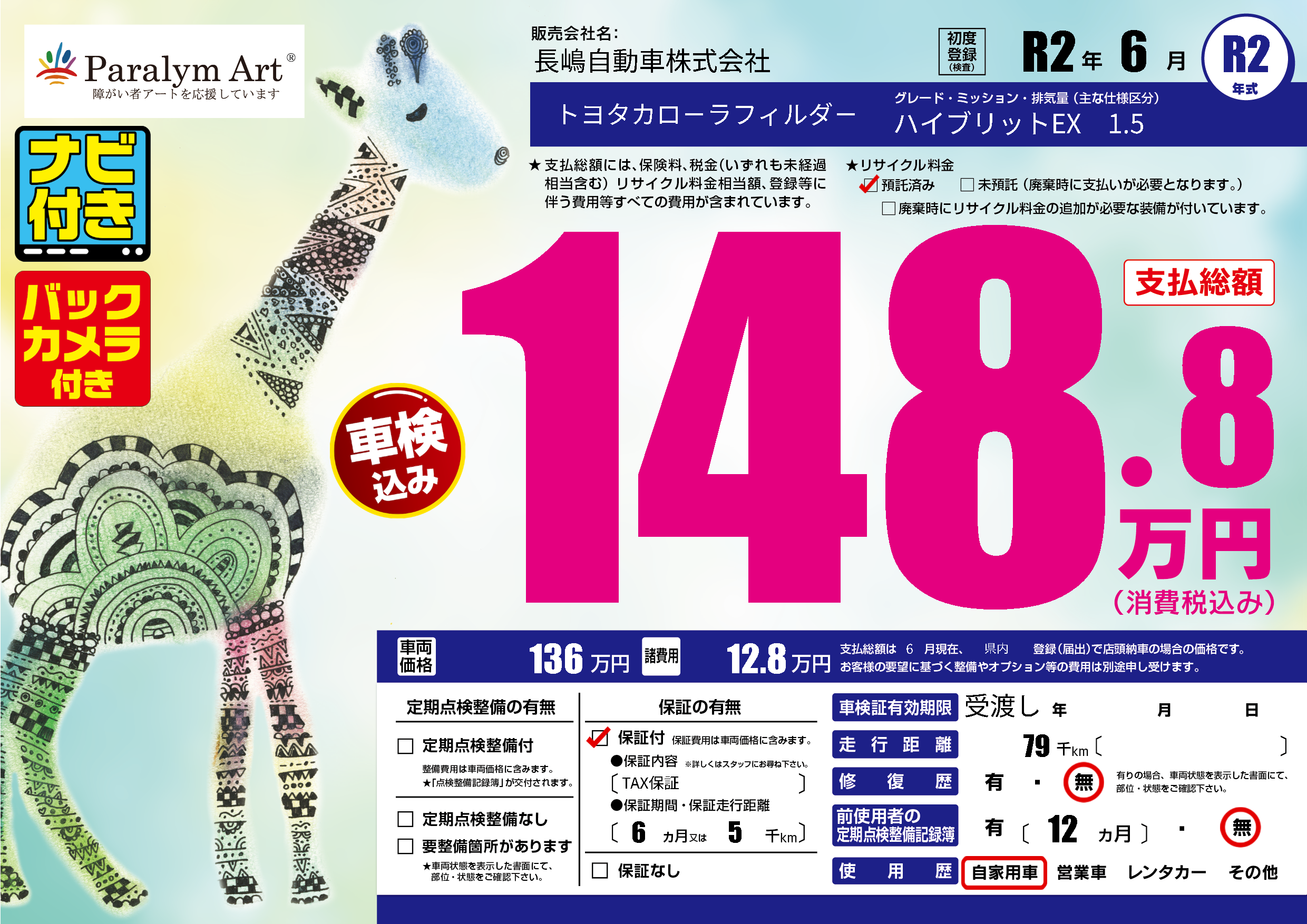 | 走行キロ | 7.9万km | 初年度登録 | R2年6月 |