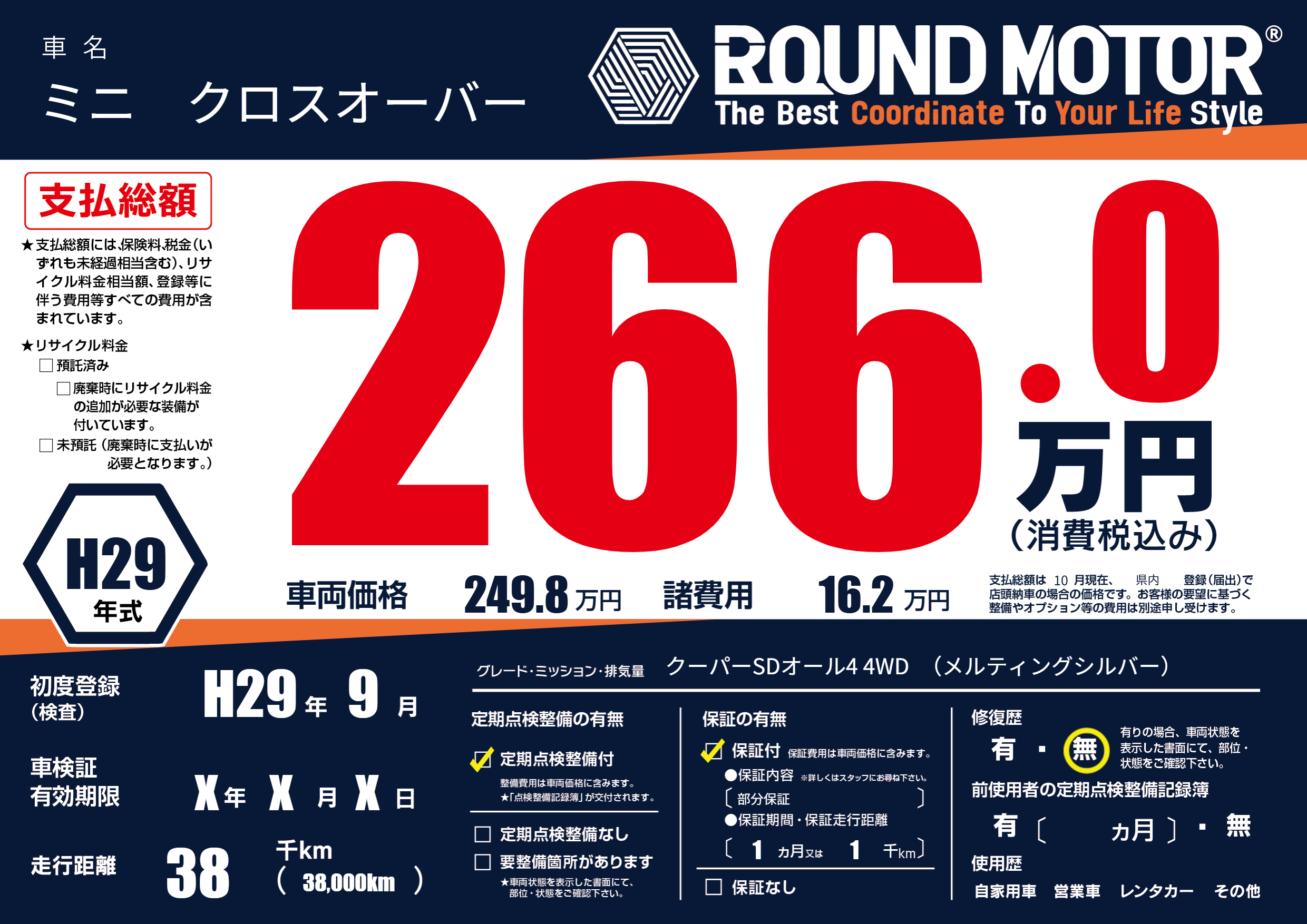 | 車名 | ミニ クロスオーバー | グレード ミッション 排気量 |