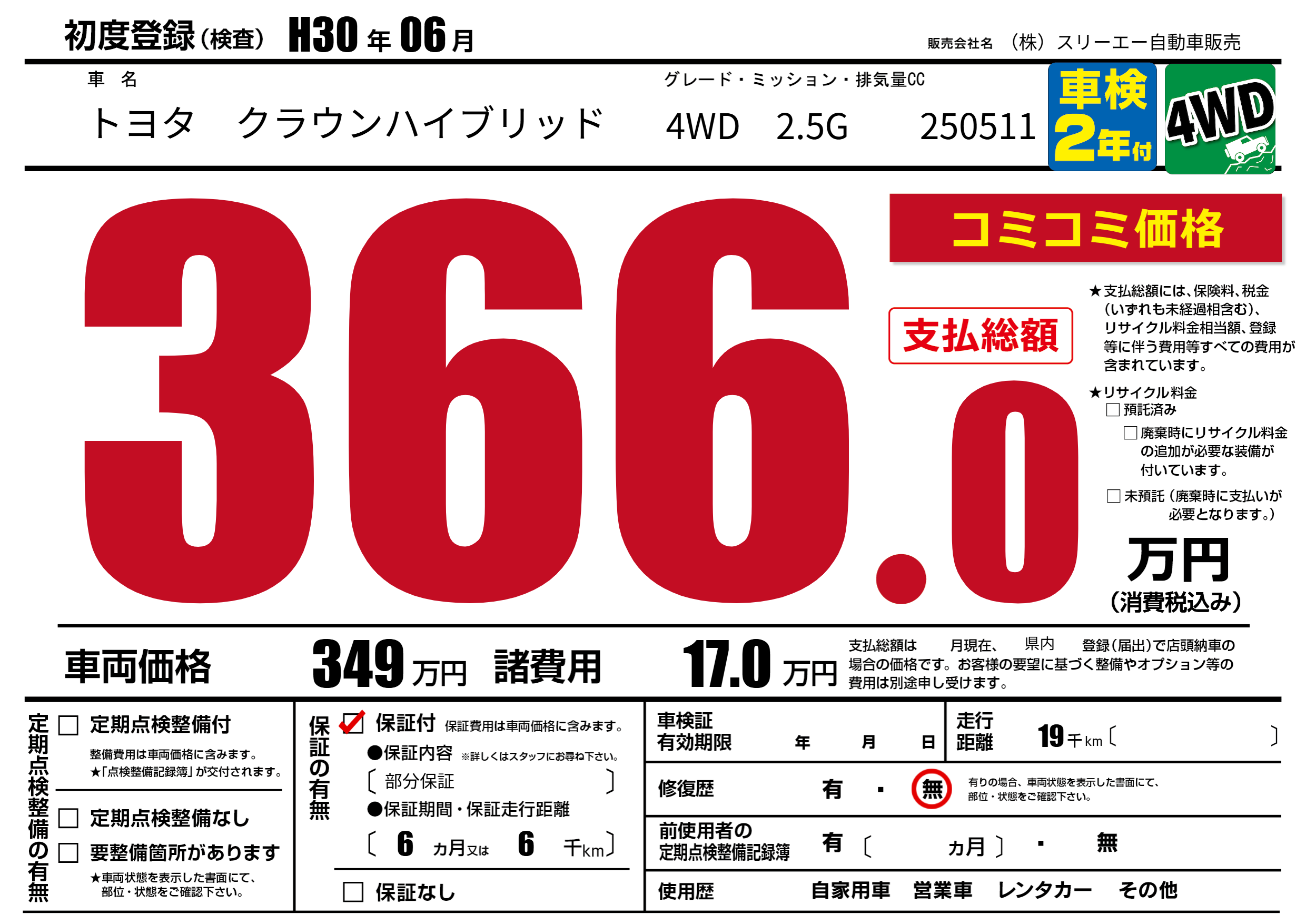 保証付き 保証内容(部分保証) 6ヶ月または(6)千kmまで |