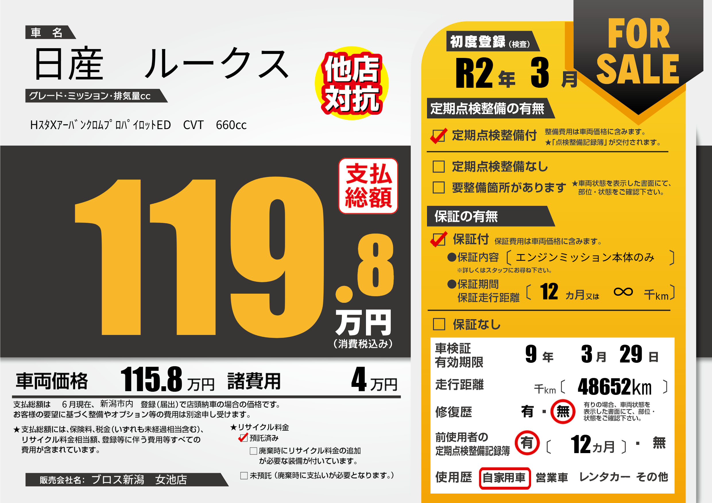 | 走行キロ | - | 初年度登録 | R2年3月 |