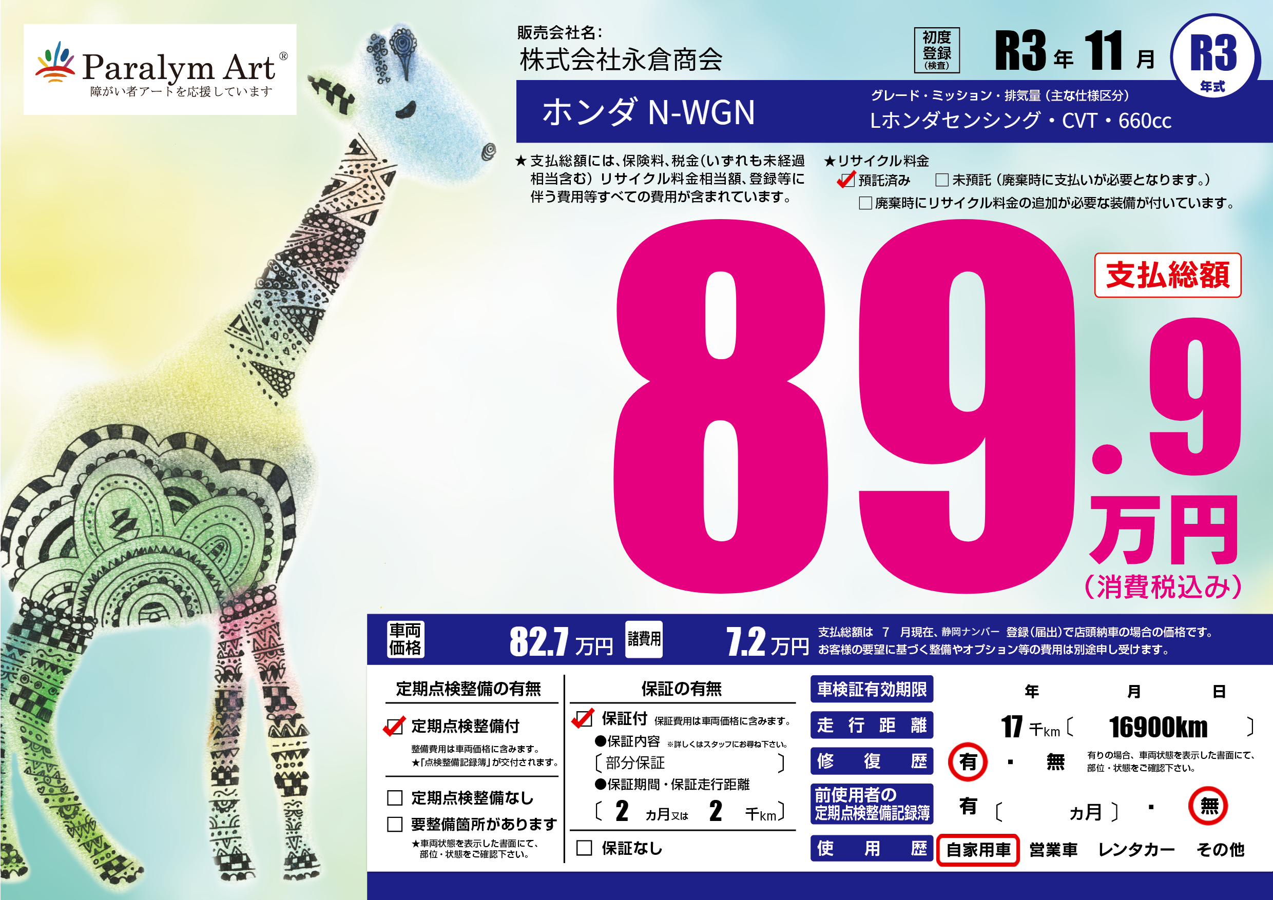 | 車名 | ホンダ N-WGN | グレード ミッション 排気量 |