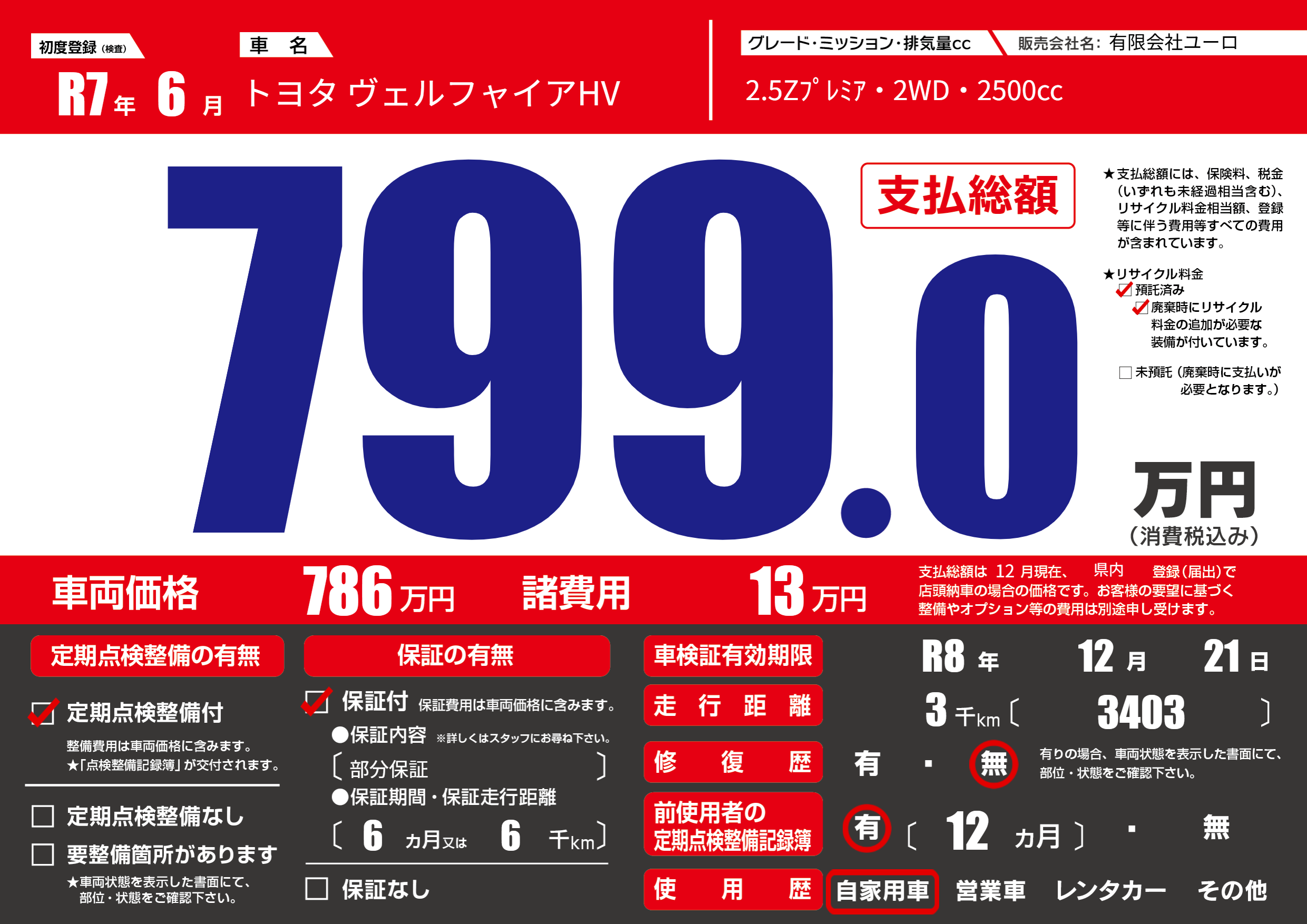 保証付き 保証内容(部分保証) 6ヶ月または(6)千kmまで |