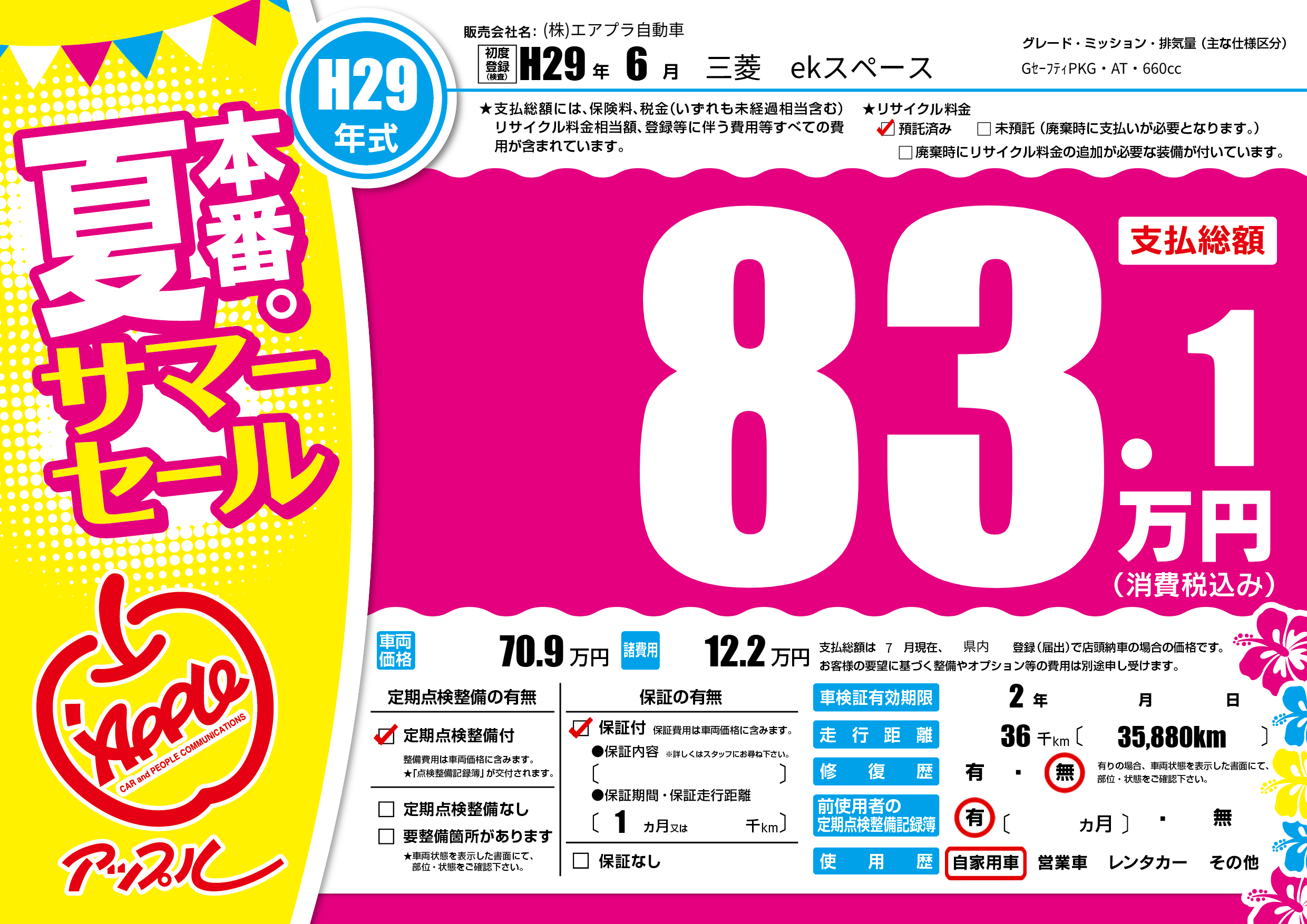 | 車名 | 三菱 ekスペース | グレード ミッション 排気量 |