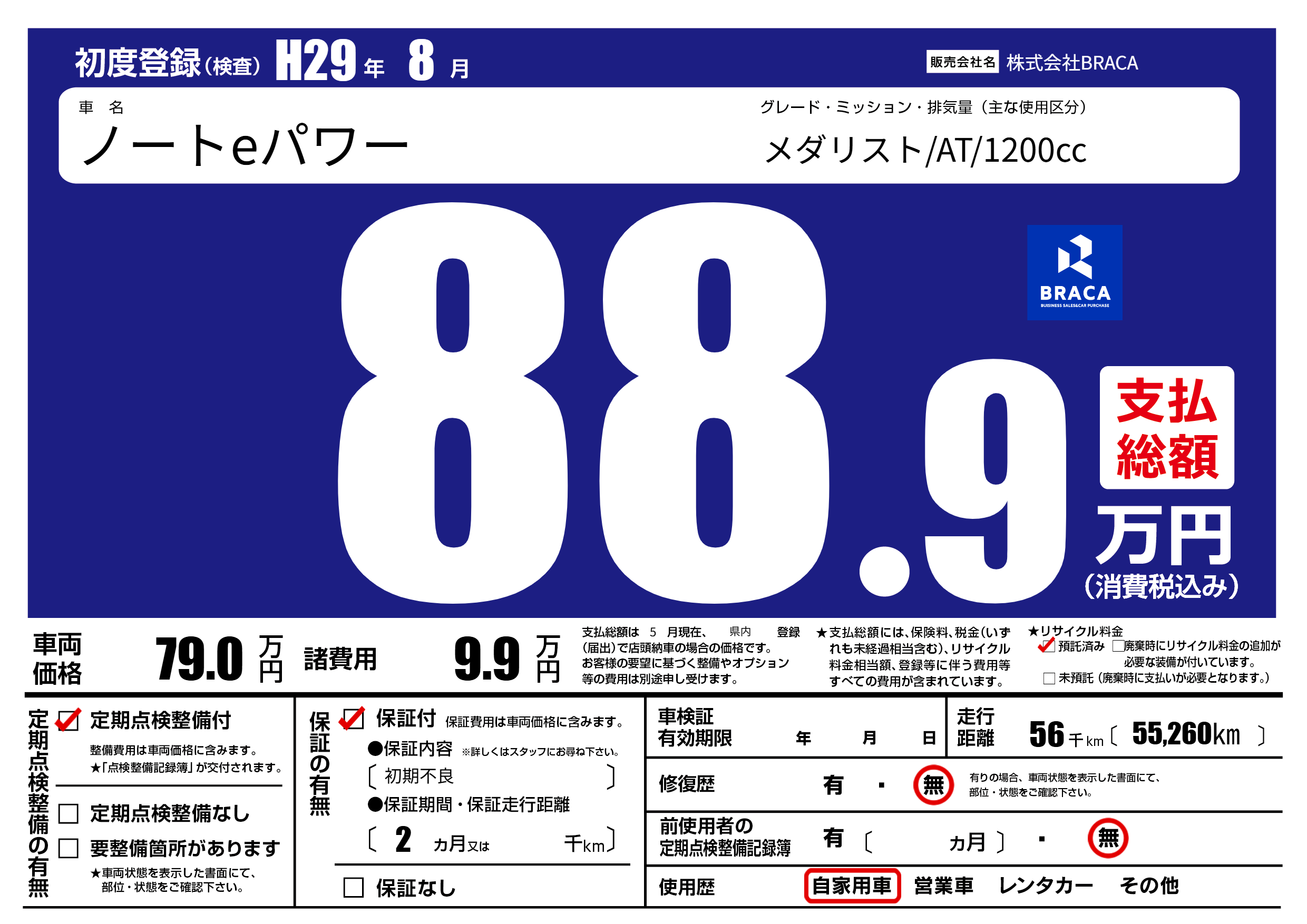 | 走行キロ | 5.6万km | 初年度登録 | H29年8月 |
