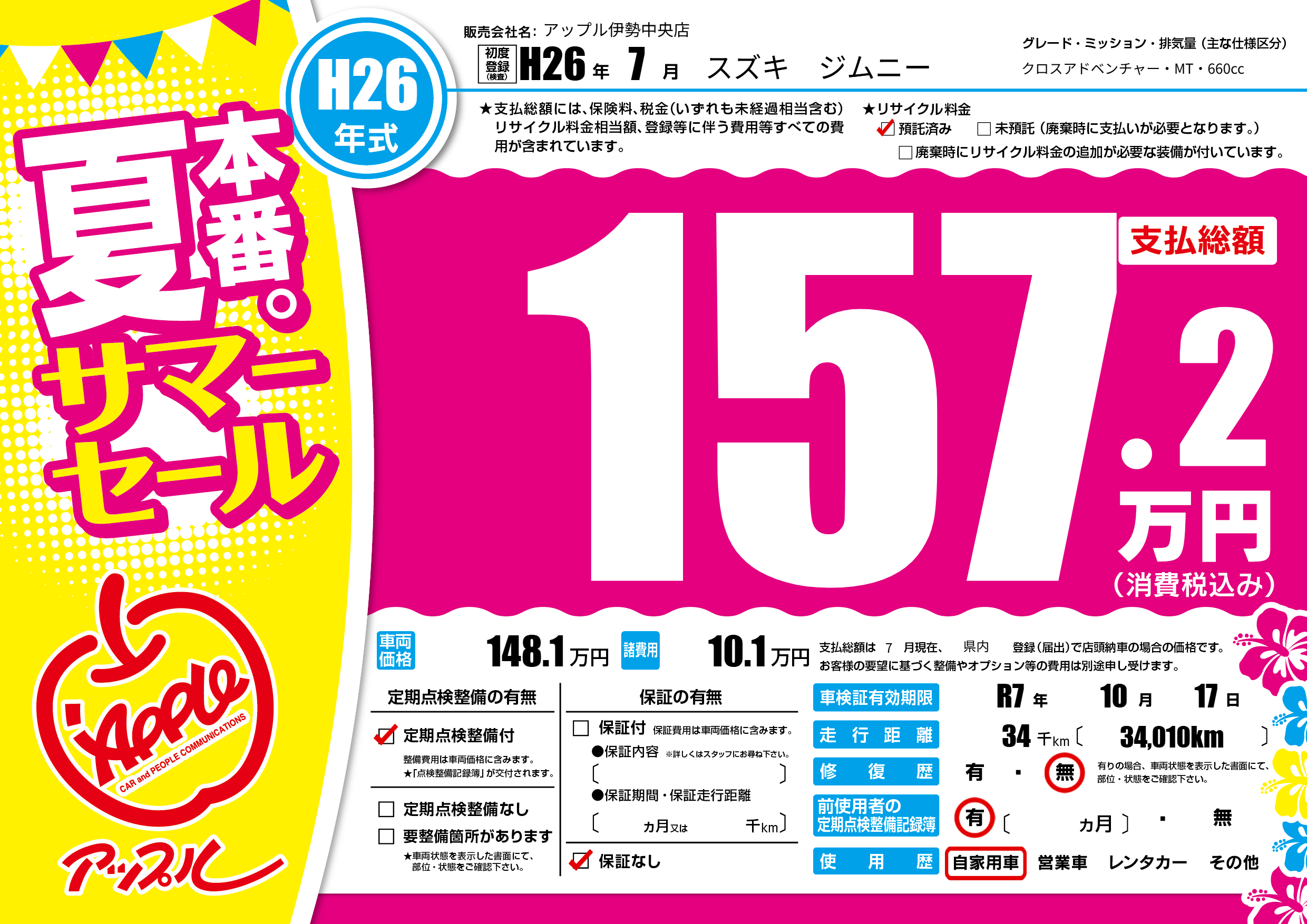 なし | 車検制限 | R7年10月17月 |