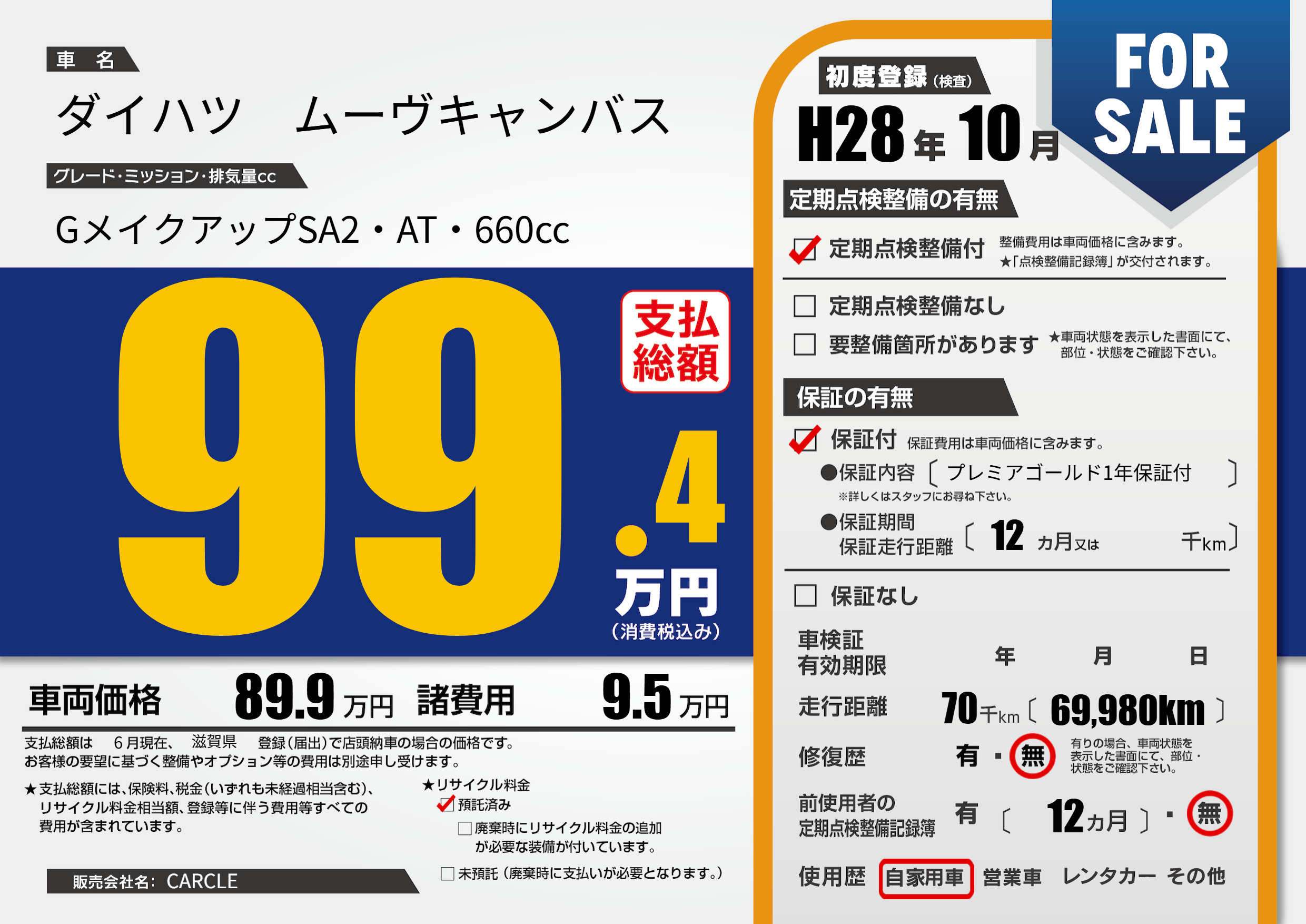 | 定期点検整備 | 定期点検整備あり | ||