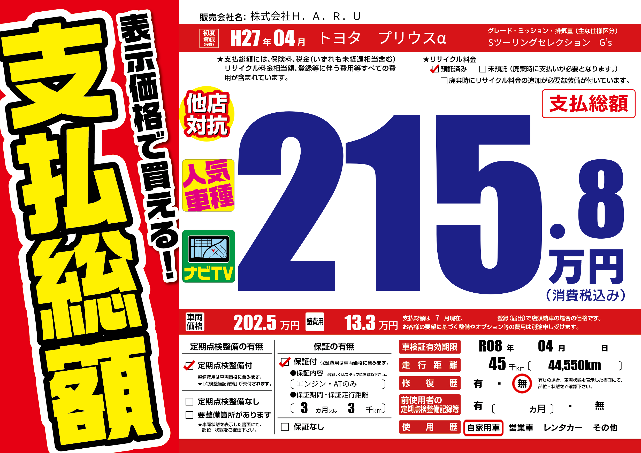 なし | 車検制限 | R08年04月---月 |