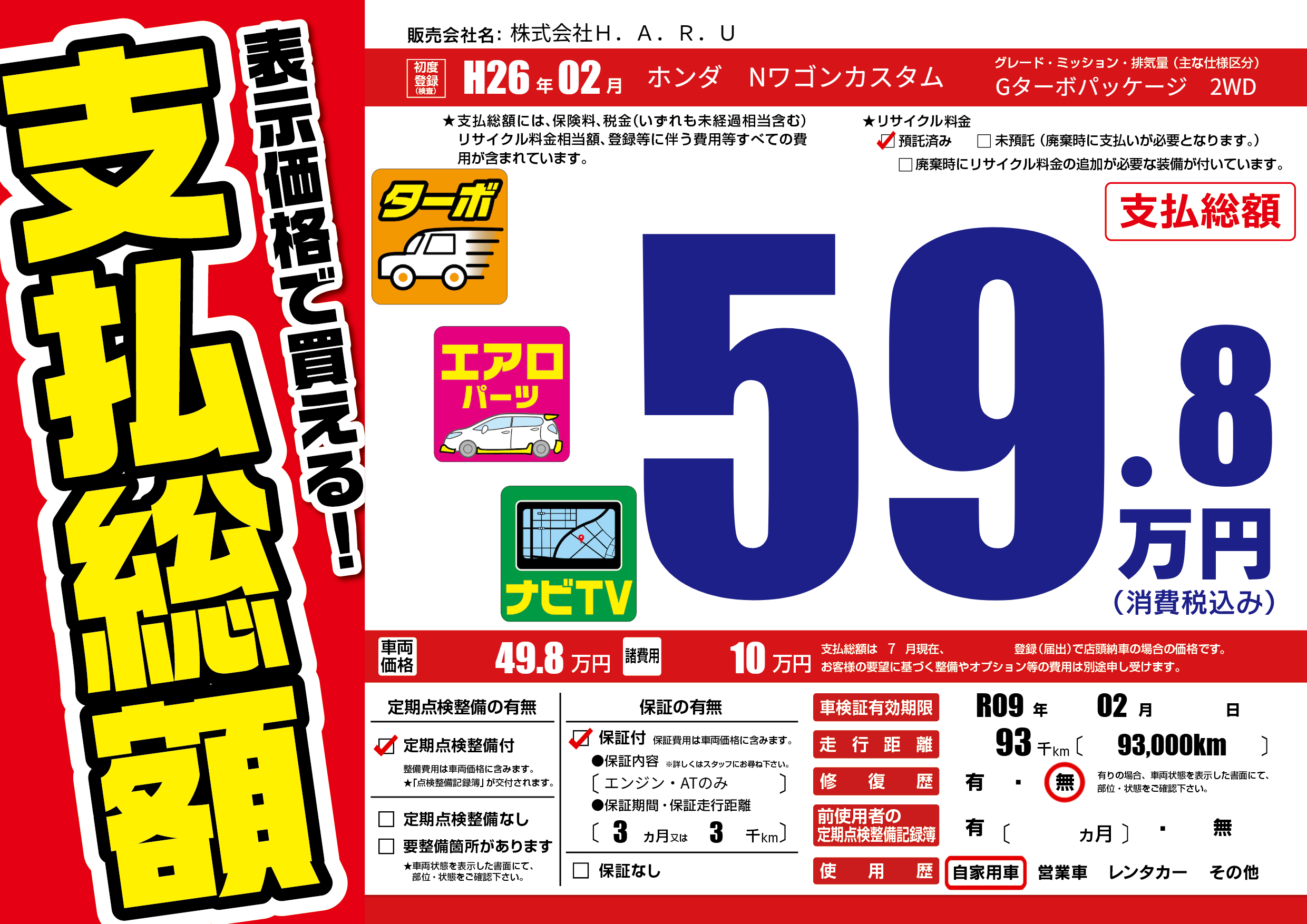 | 走行キロ | 9.3万km | ||