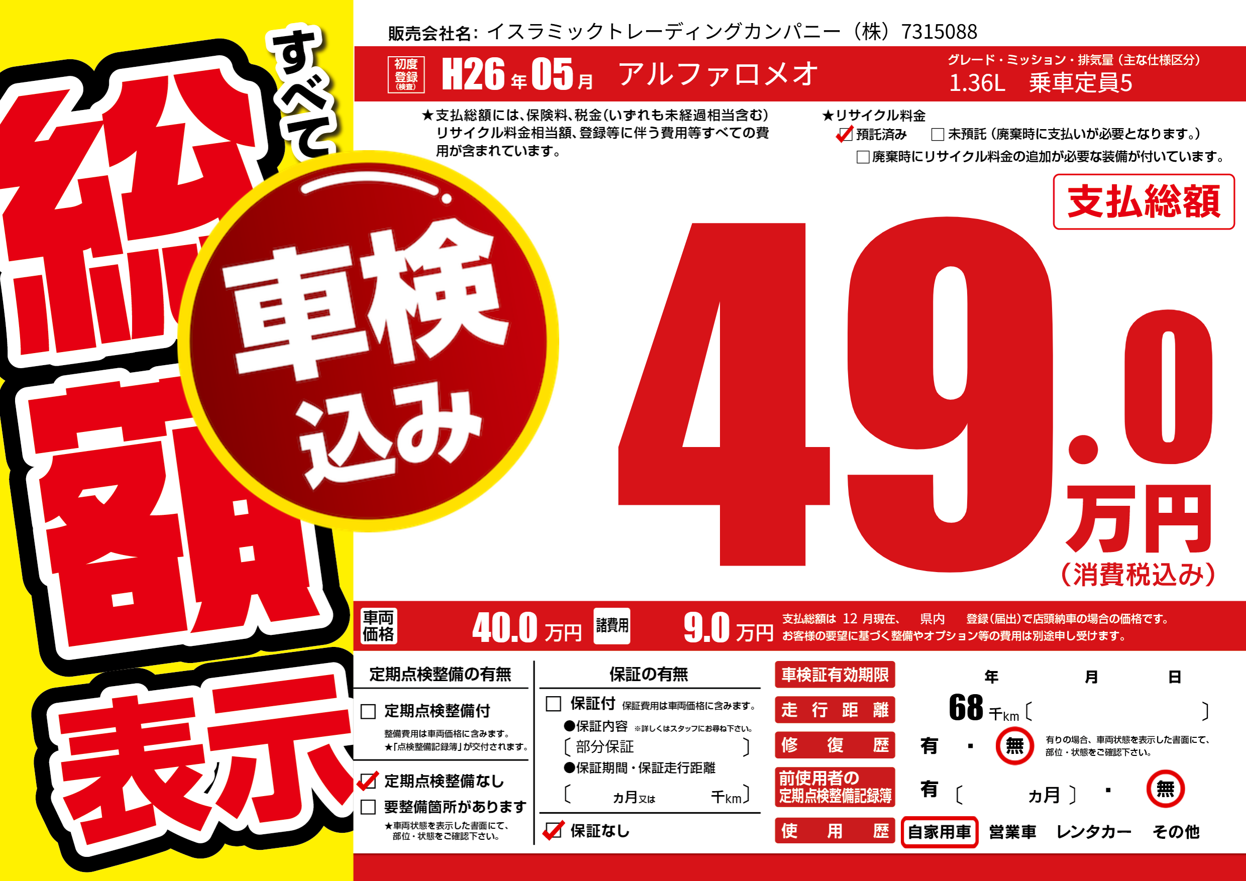 | 車名 | アルファロメオ | グレード ミッション 排気量 |