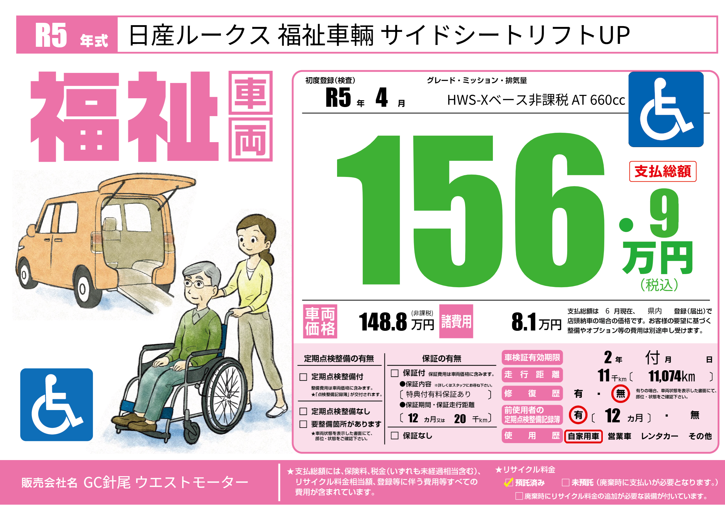 | 走行キロ | 1.1万km | 初年度登録 | R5年4月 |
