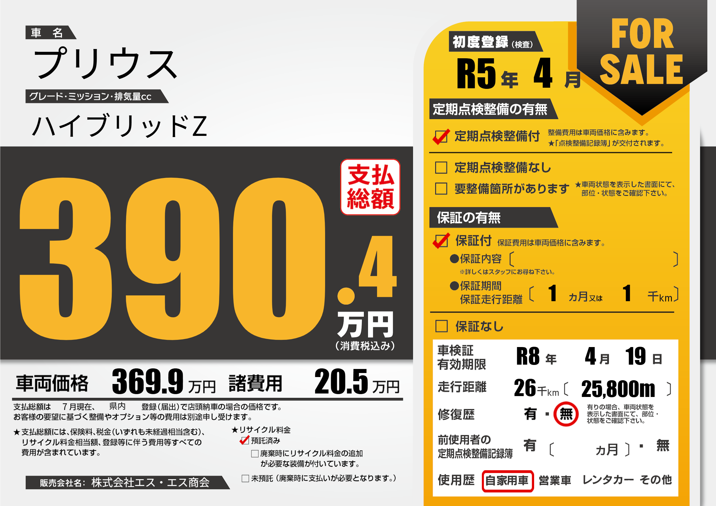 | 走行キロ | 2.6万km | 初年度登録 | R5年4月 |