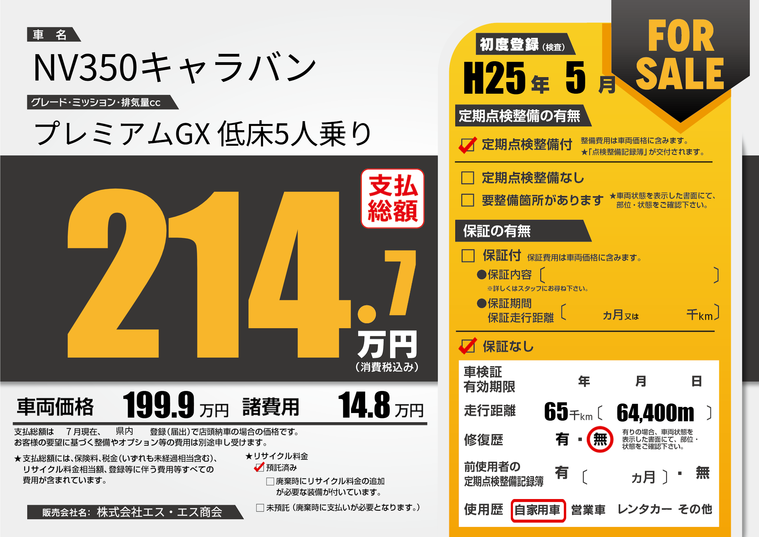 | 走行キロ | 6.5万km | ||