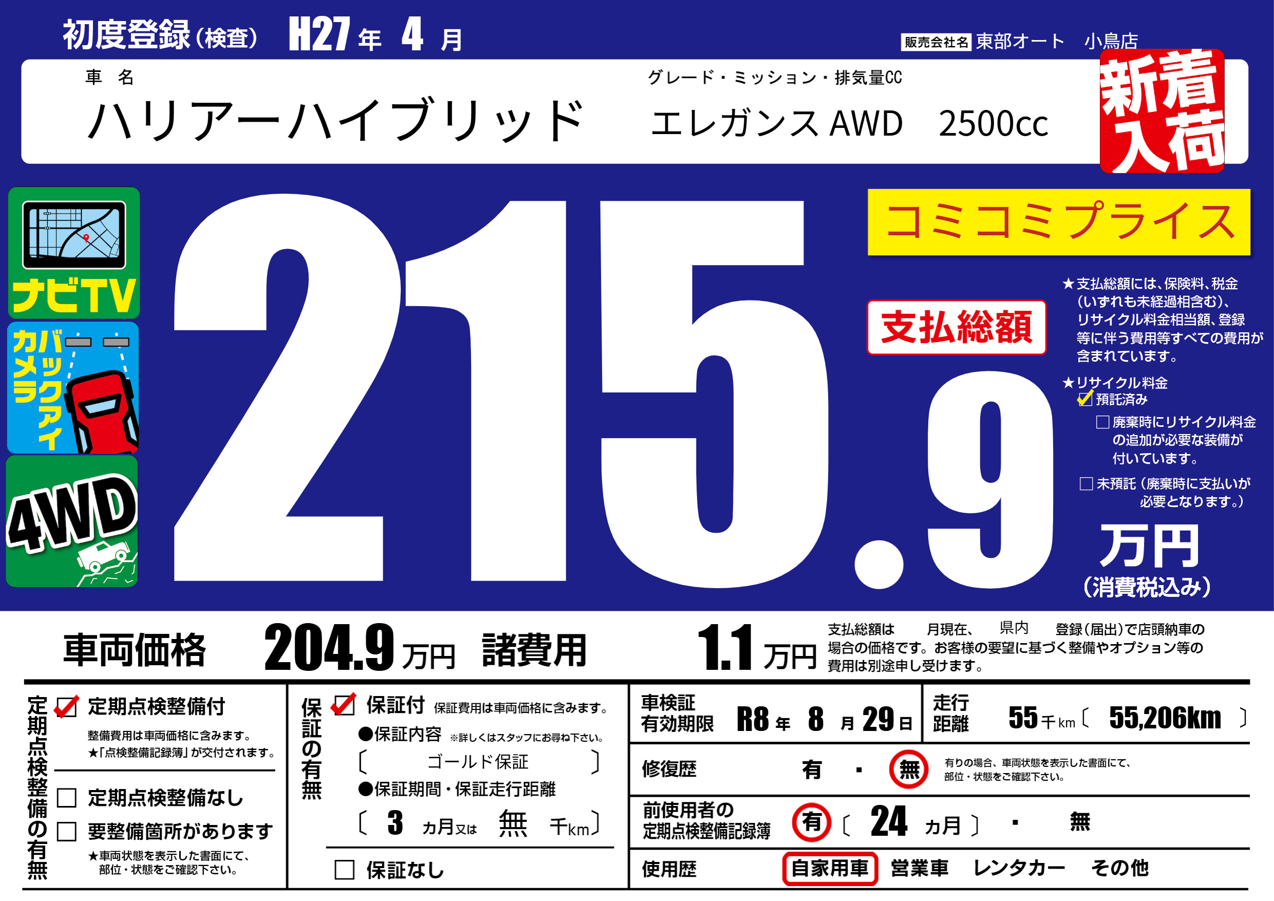 | 車検制限 | R8年 8月 29日 | ||