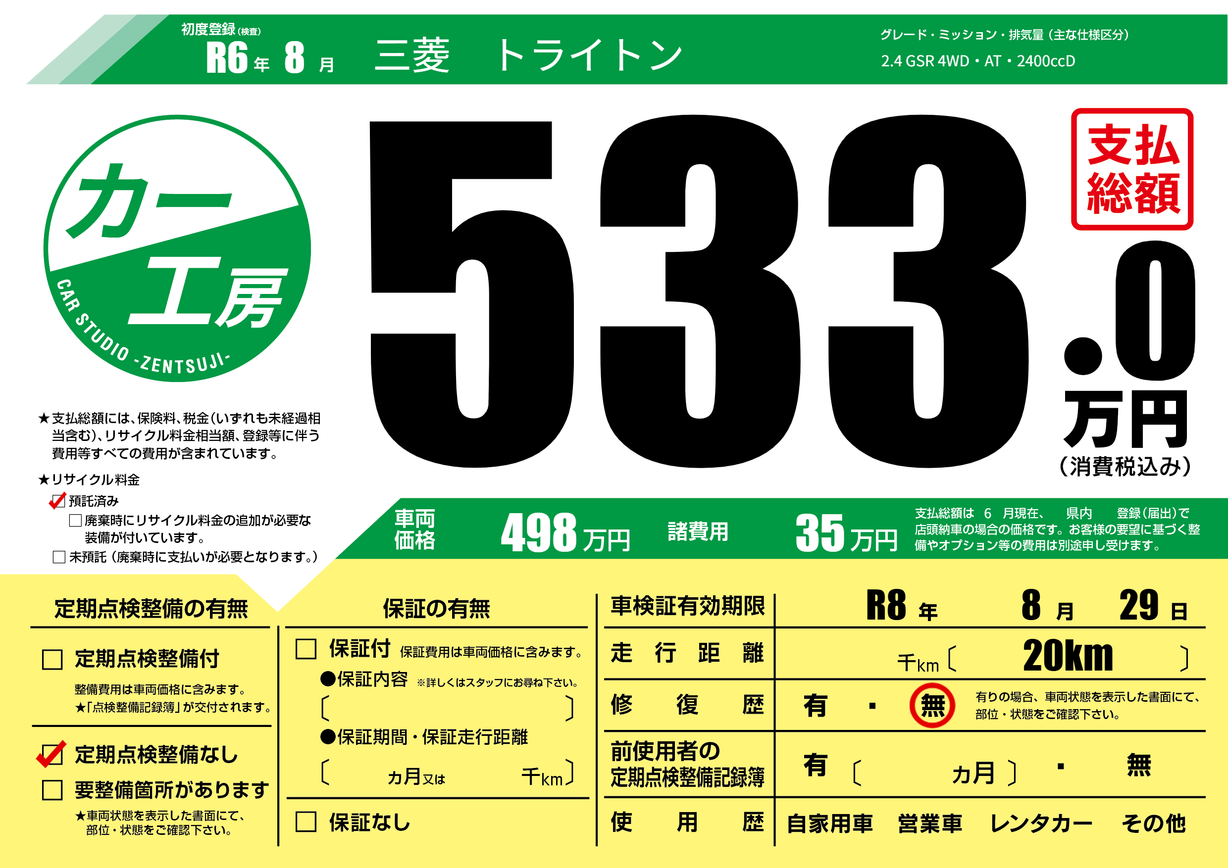 なし | 車検制限 | R8年8月29月 |