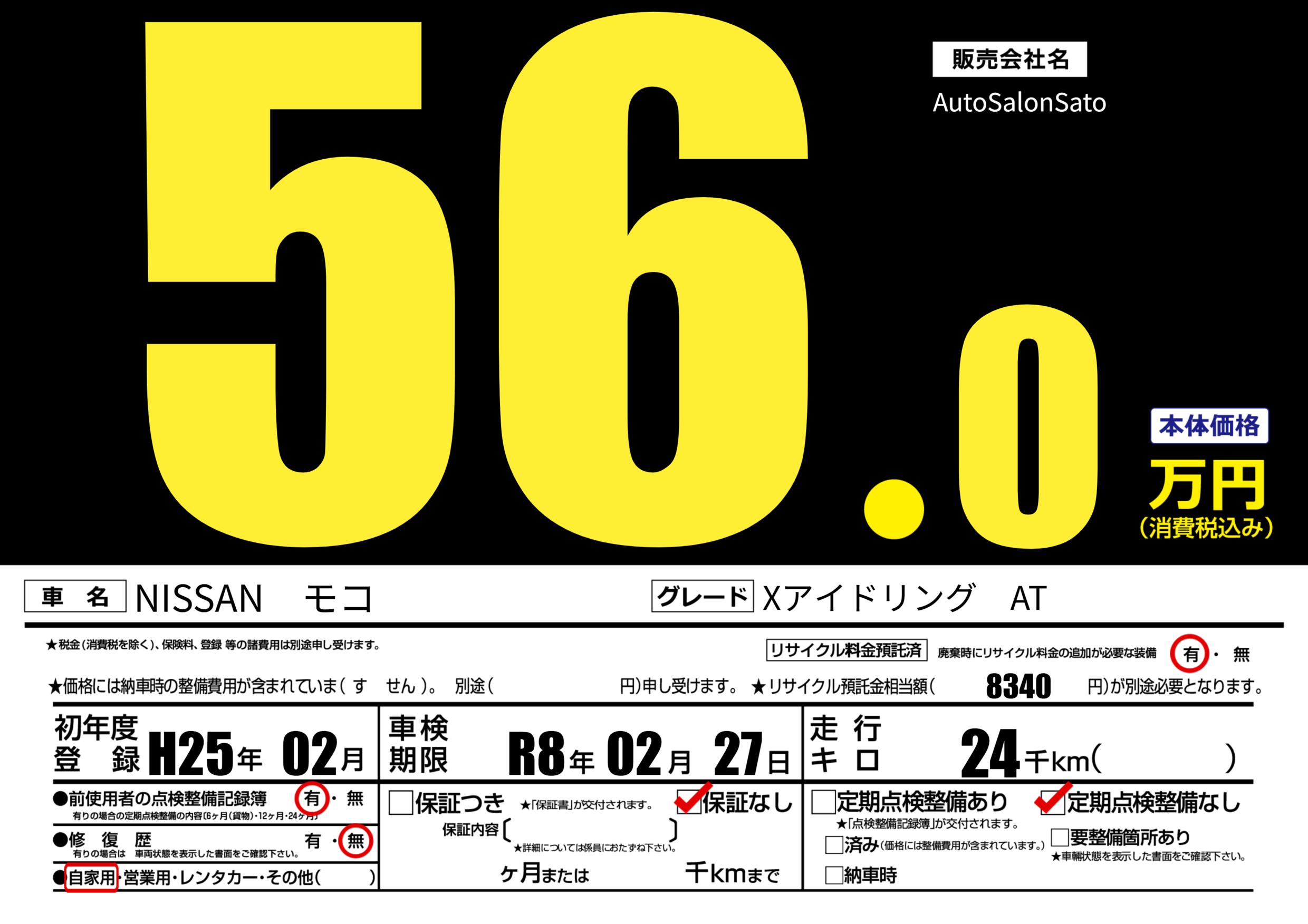 なし | 車検制限 | R8年02月27月 |