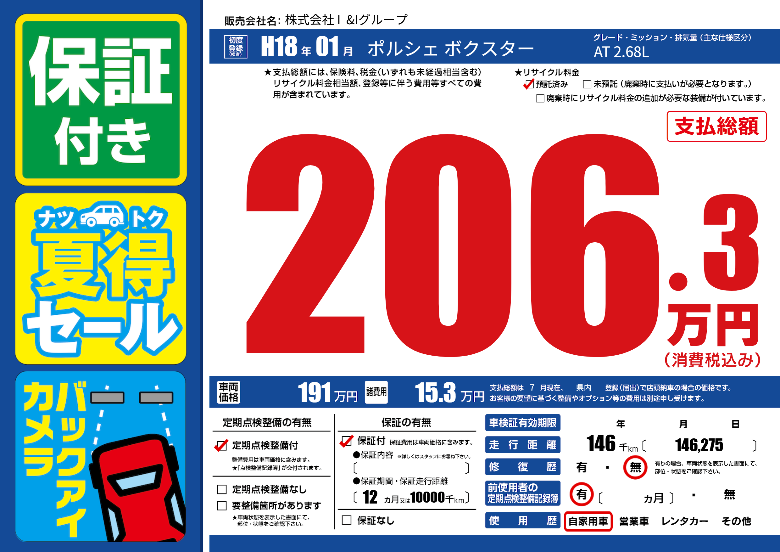 | 車名 | ポルシェ ボクスター | グレード ミッション 排気量 |