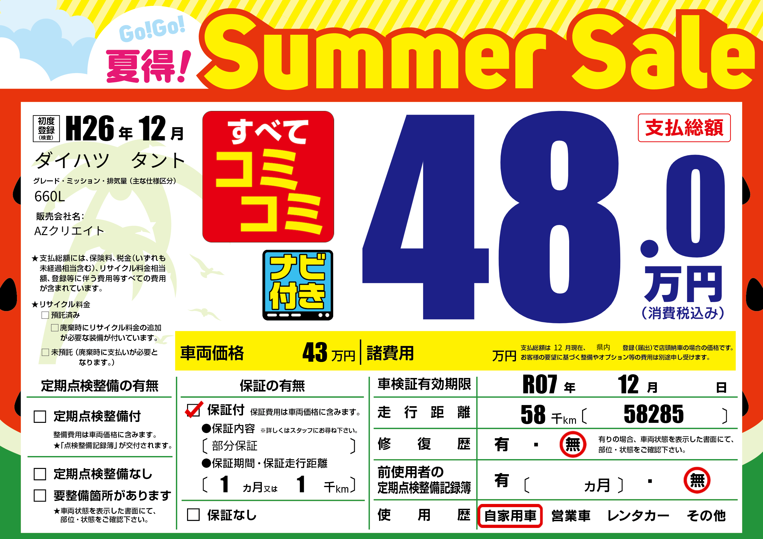 | 車検制限 | R07年 12月 - 日 | ||