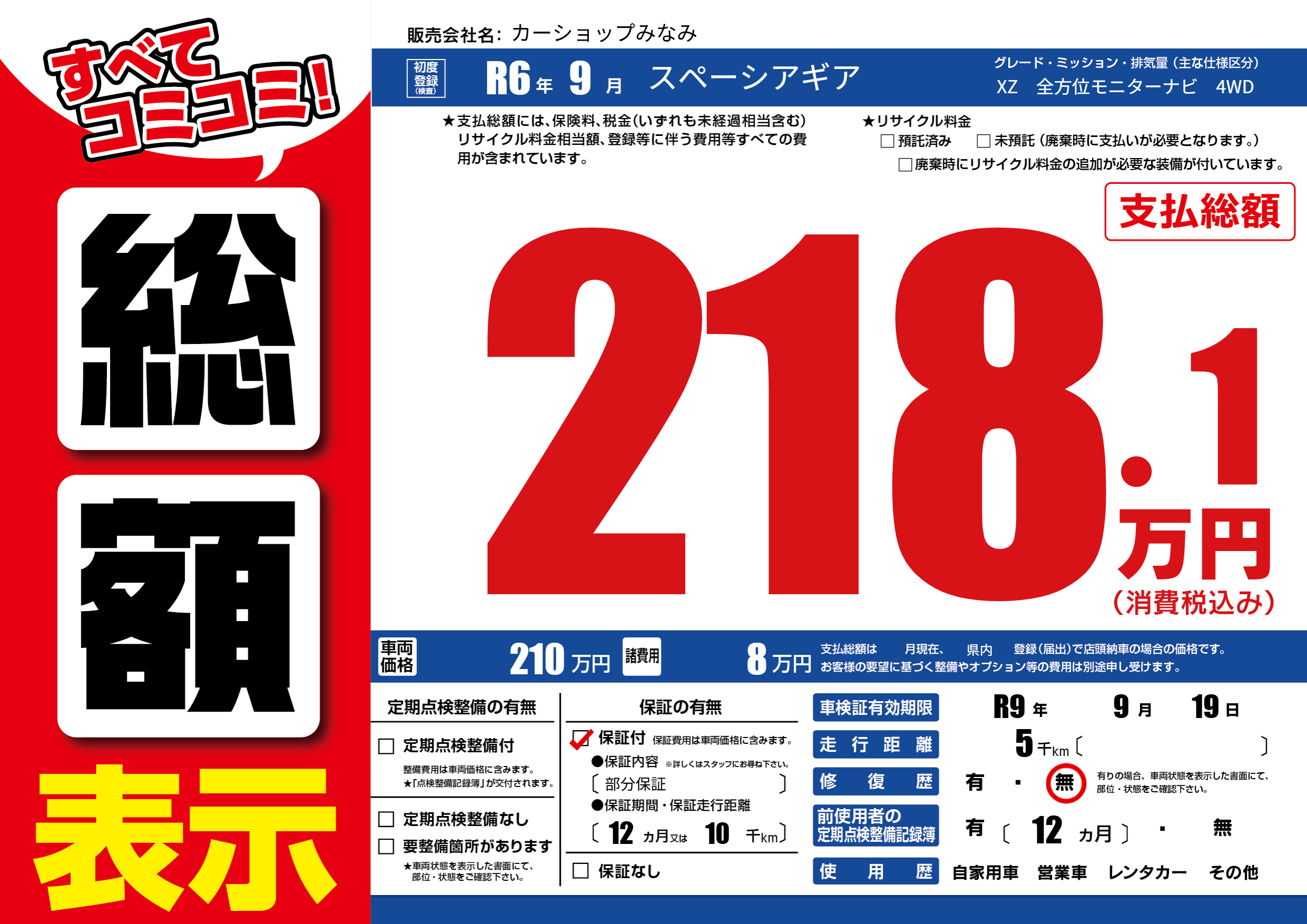 なし | 車検制限 | R9年9月19月 |