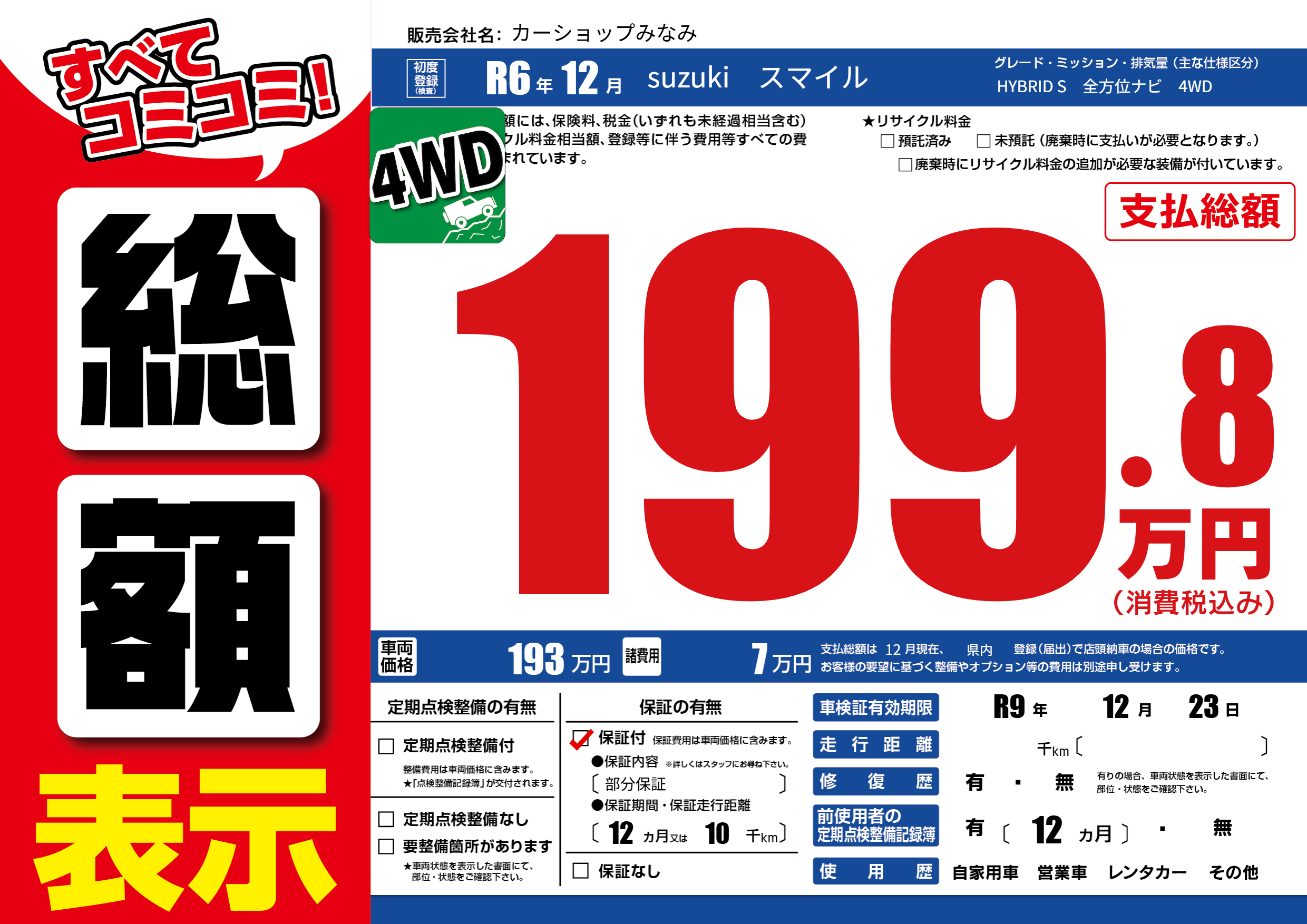 | 車名 | suzuki スマイル | グレード ミッション 排気量 |