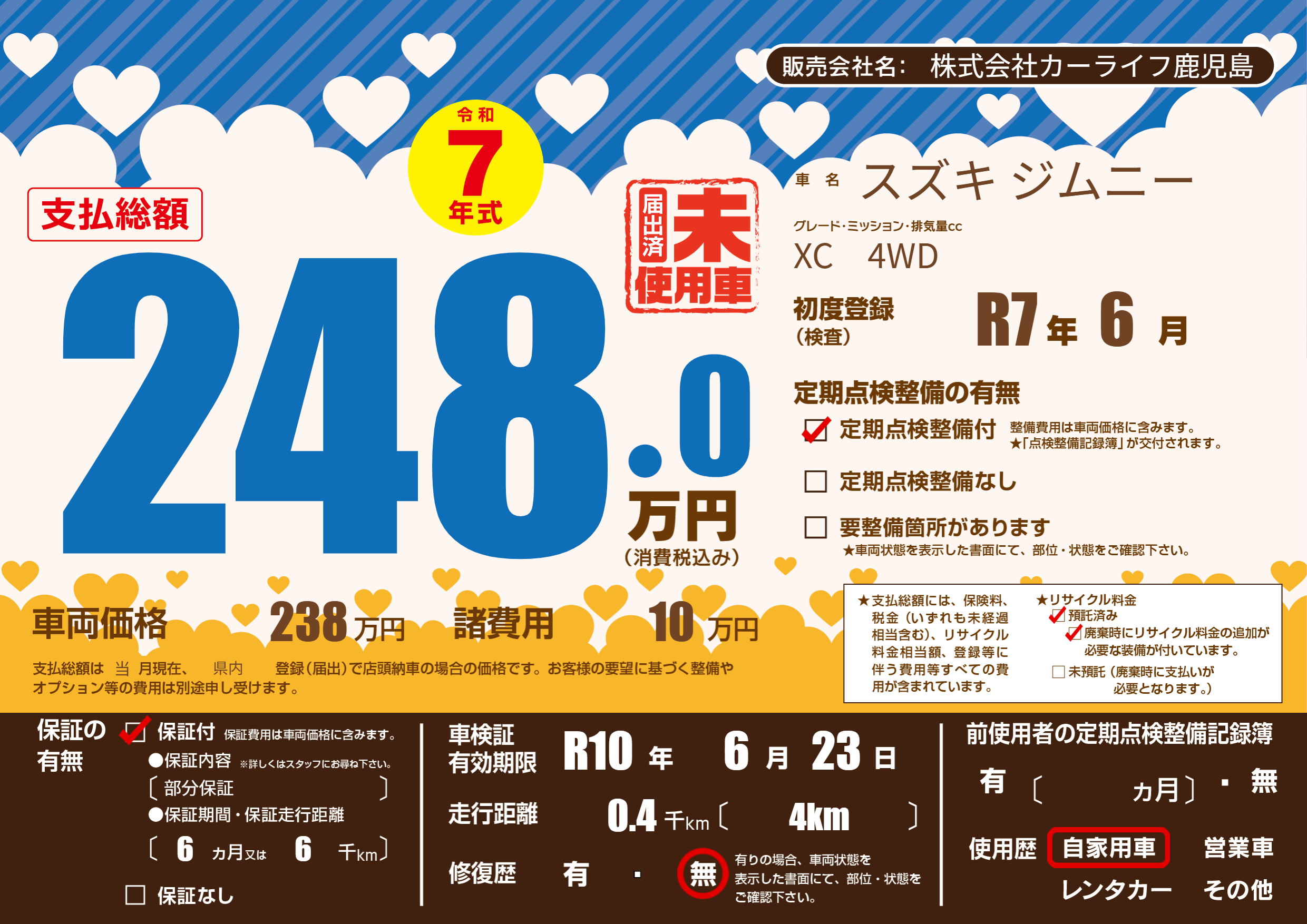 | 走行キロ | - | 初年度登録 | R7年6月 |