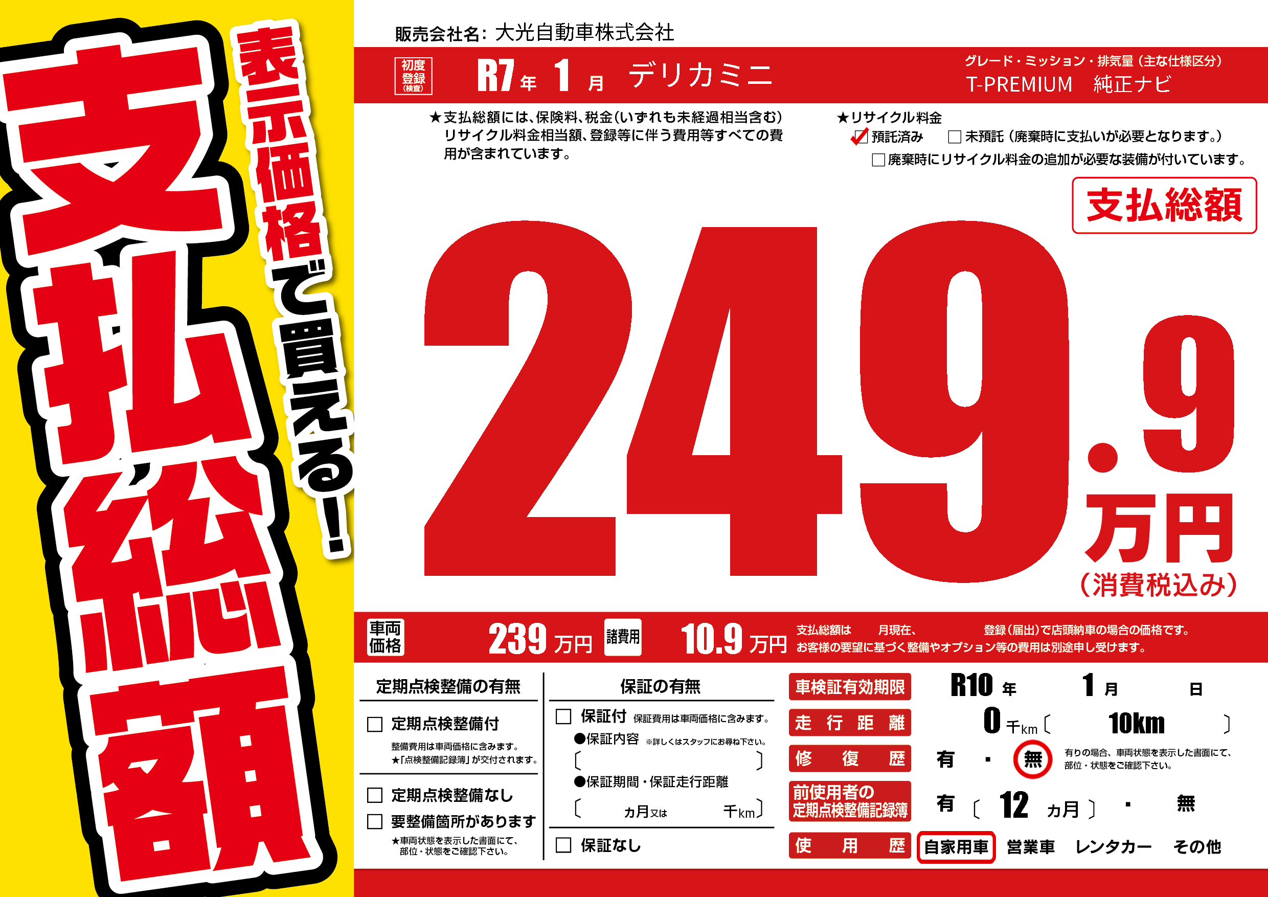 | 車名 | デリカミニ | グレード ミッション 排気量 |