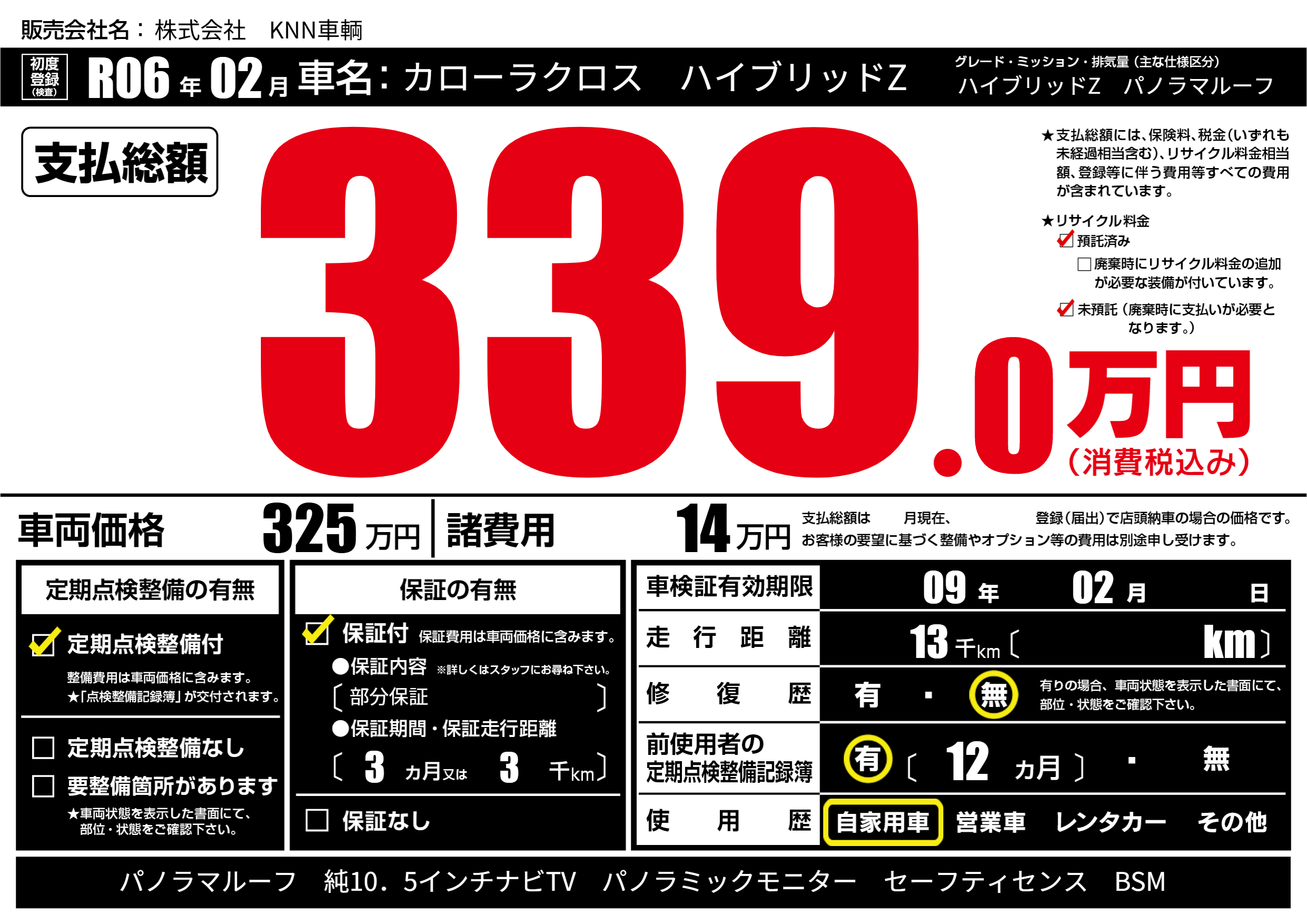 | 走行キロ | 1.3万km | 初年度登録 | R06年02月 |