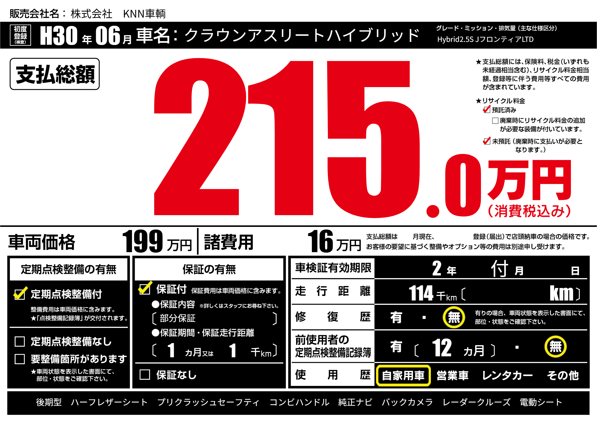 | 車名 | クラウンアスリートハイブリッド | グレード ミッション 排気量 |