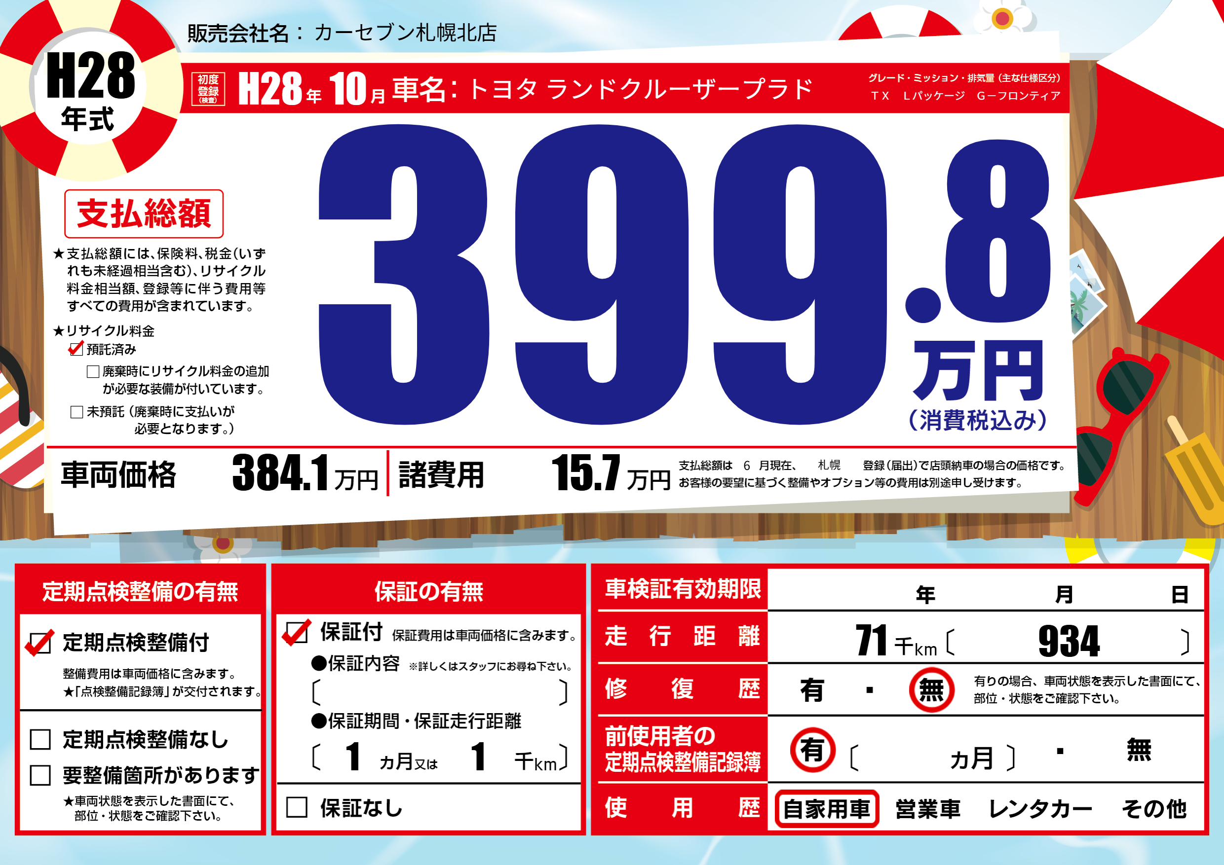 | 車名 | トヨタ ランドクルーザープラド | グレード ミッション 排気量 |