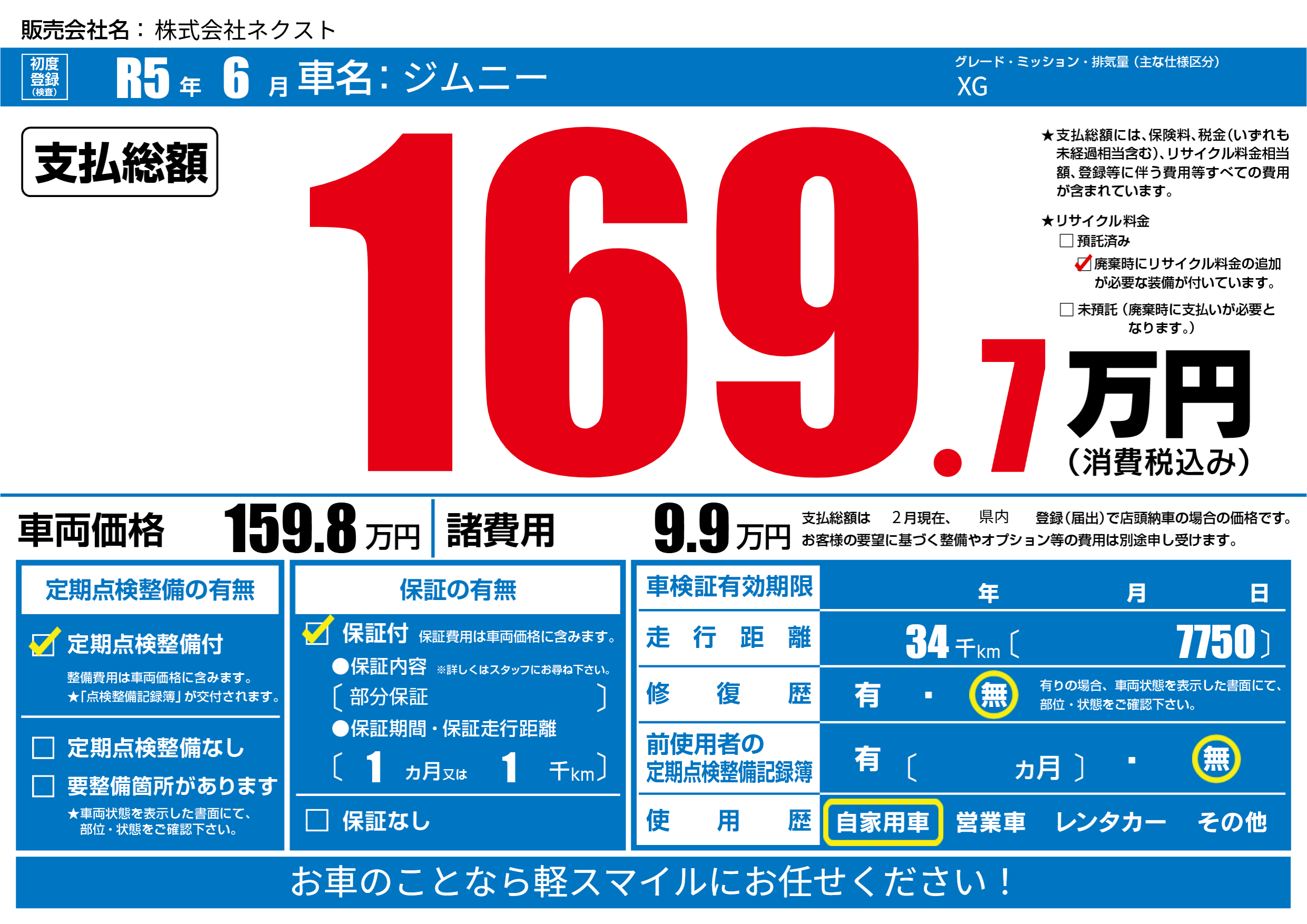 | 車検制限 | - 年 - 月 - 日 | ||