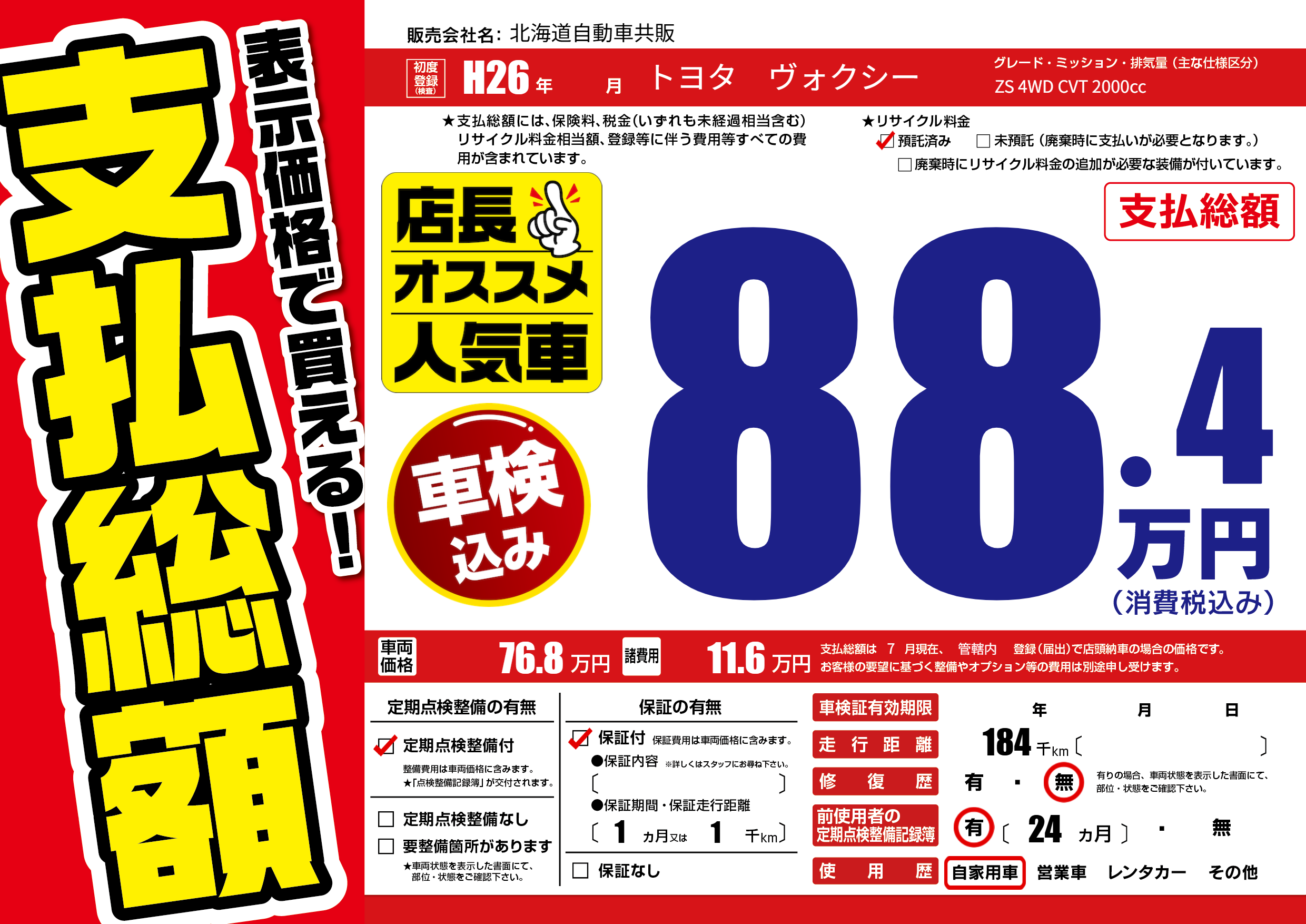 | 走行キロ | 18.4万km | 初年度登録 | H26年---月 |