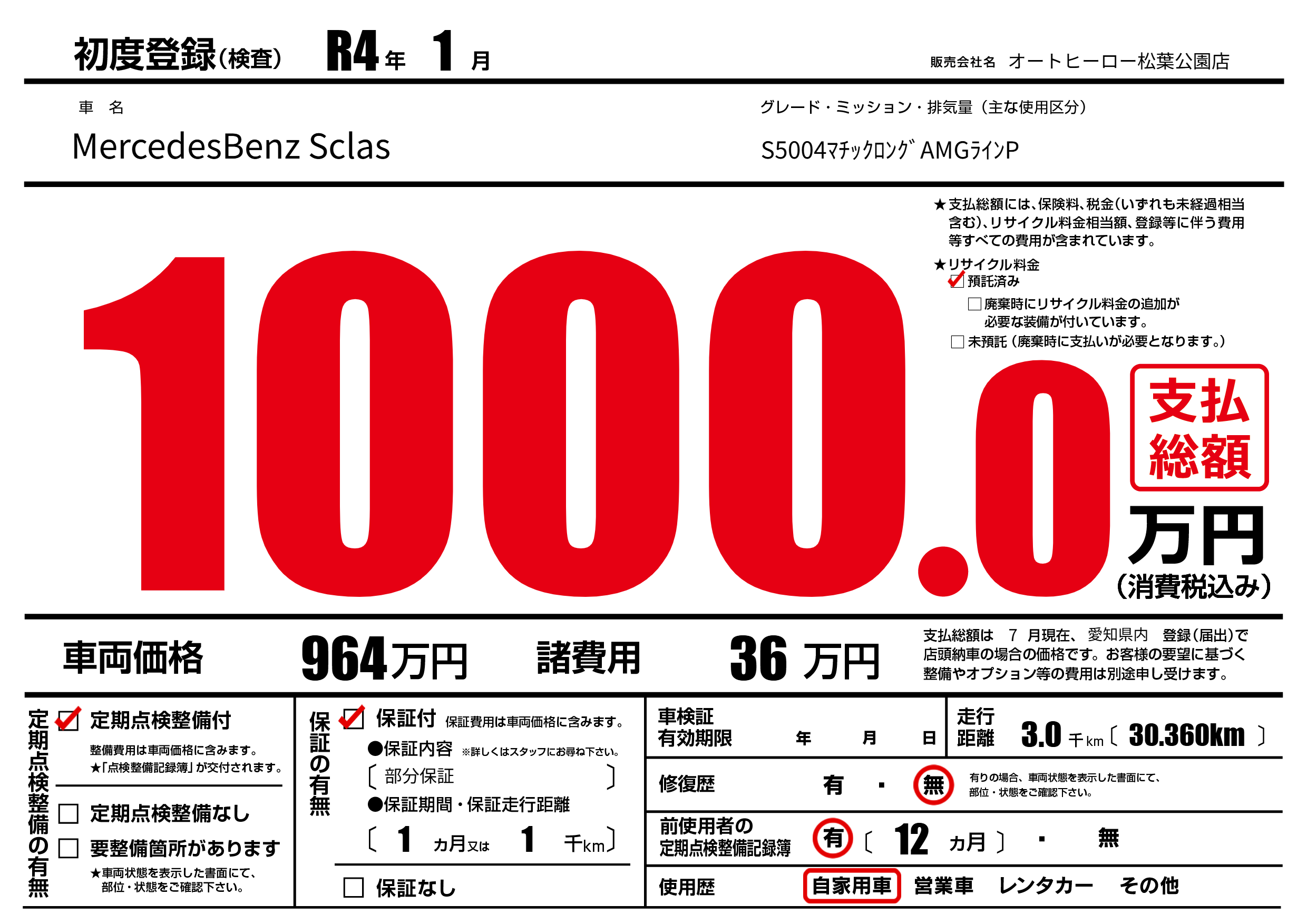 | 走行キロ | 0.3万km | 初年度登録 | R4年1月 |