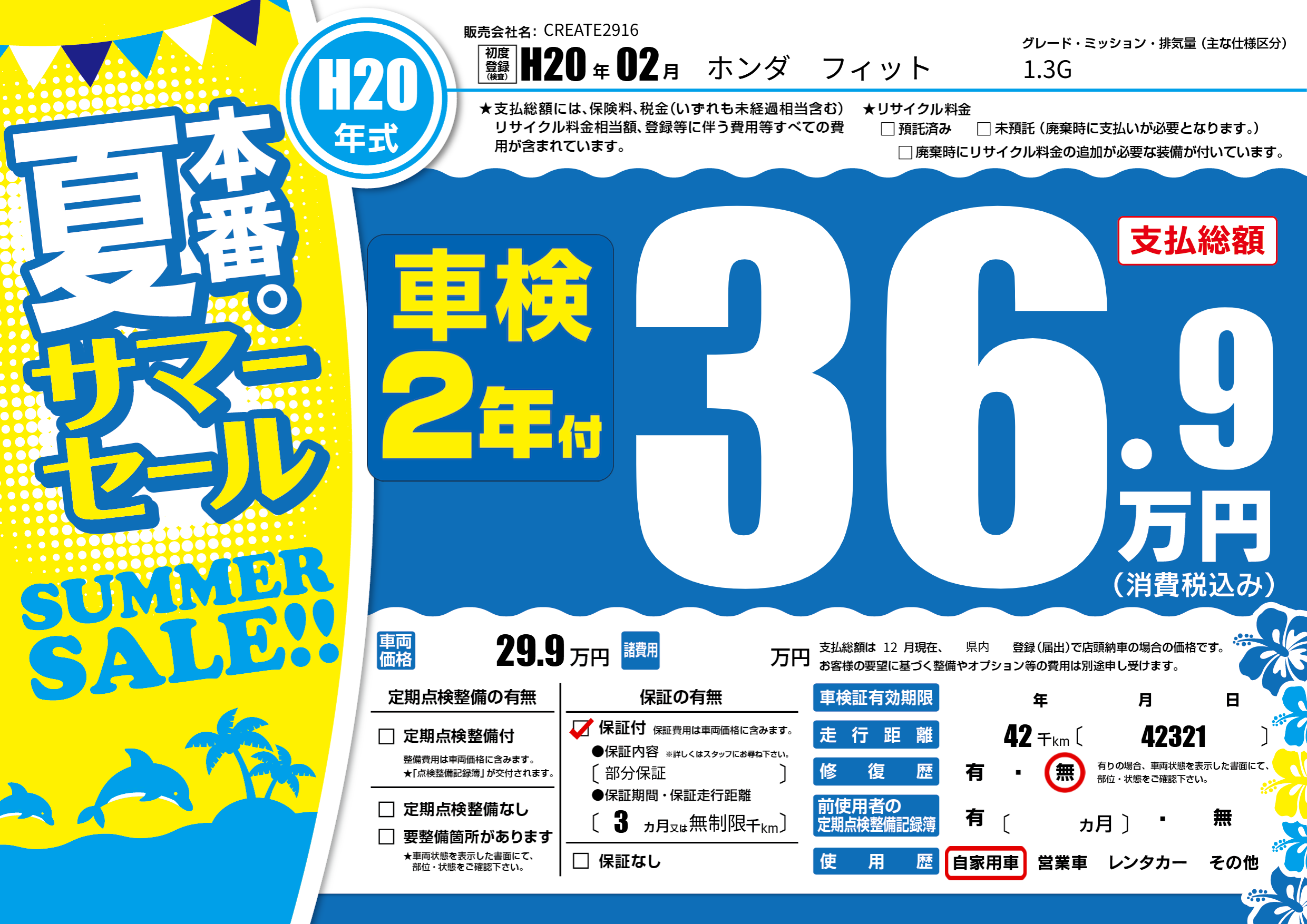 保証付き 保証内容(部分保証) 3ヶ月または(無制限)千kmまで |