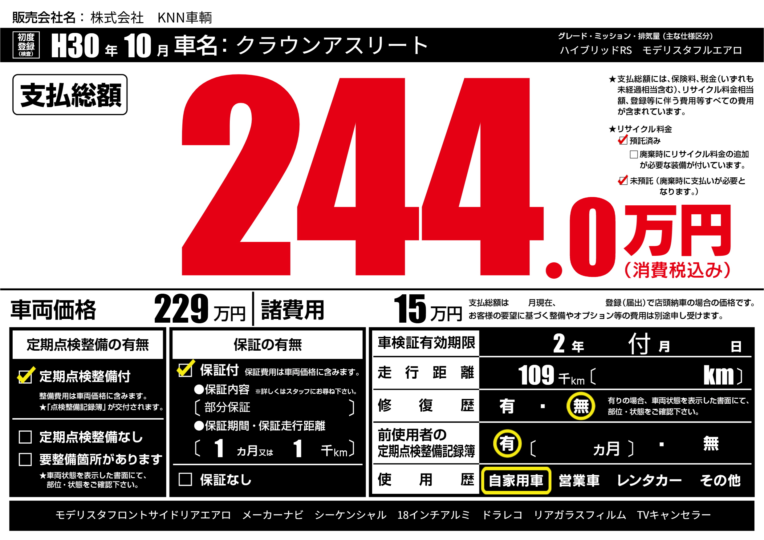| 車名 | クラウンアスリート | グレード ミッション 排気量 |