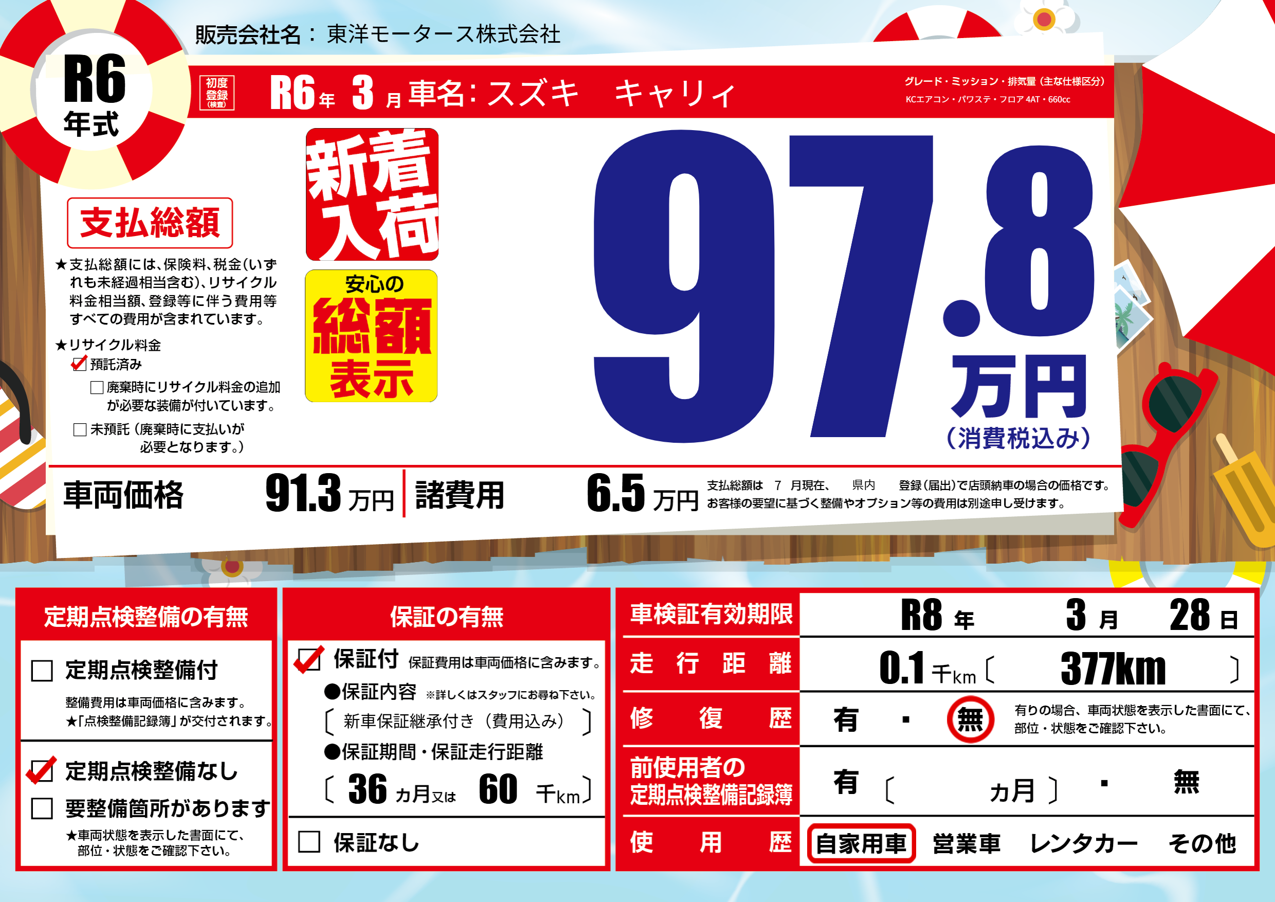 | 走行キロ | - | 初年度登録 | R6年3月 |