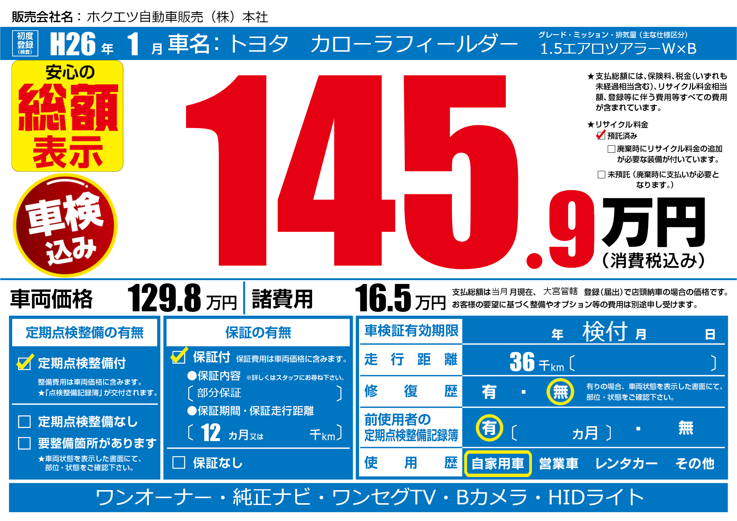 | 走行キロ | 3.6万km | ||