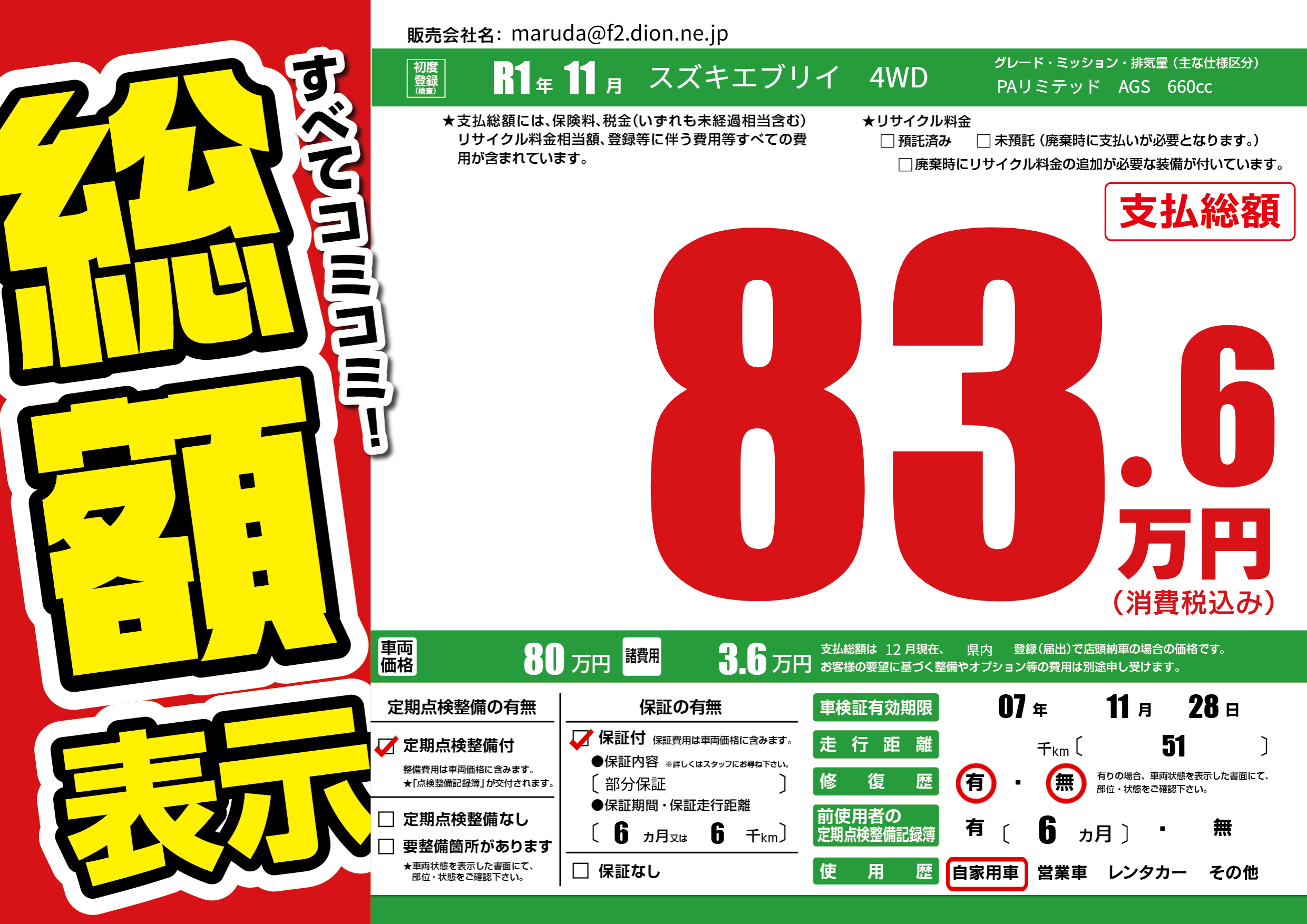 | 定期点検整備 | 定期点検整備あり | ||