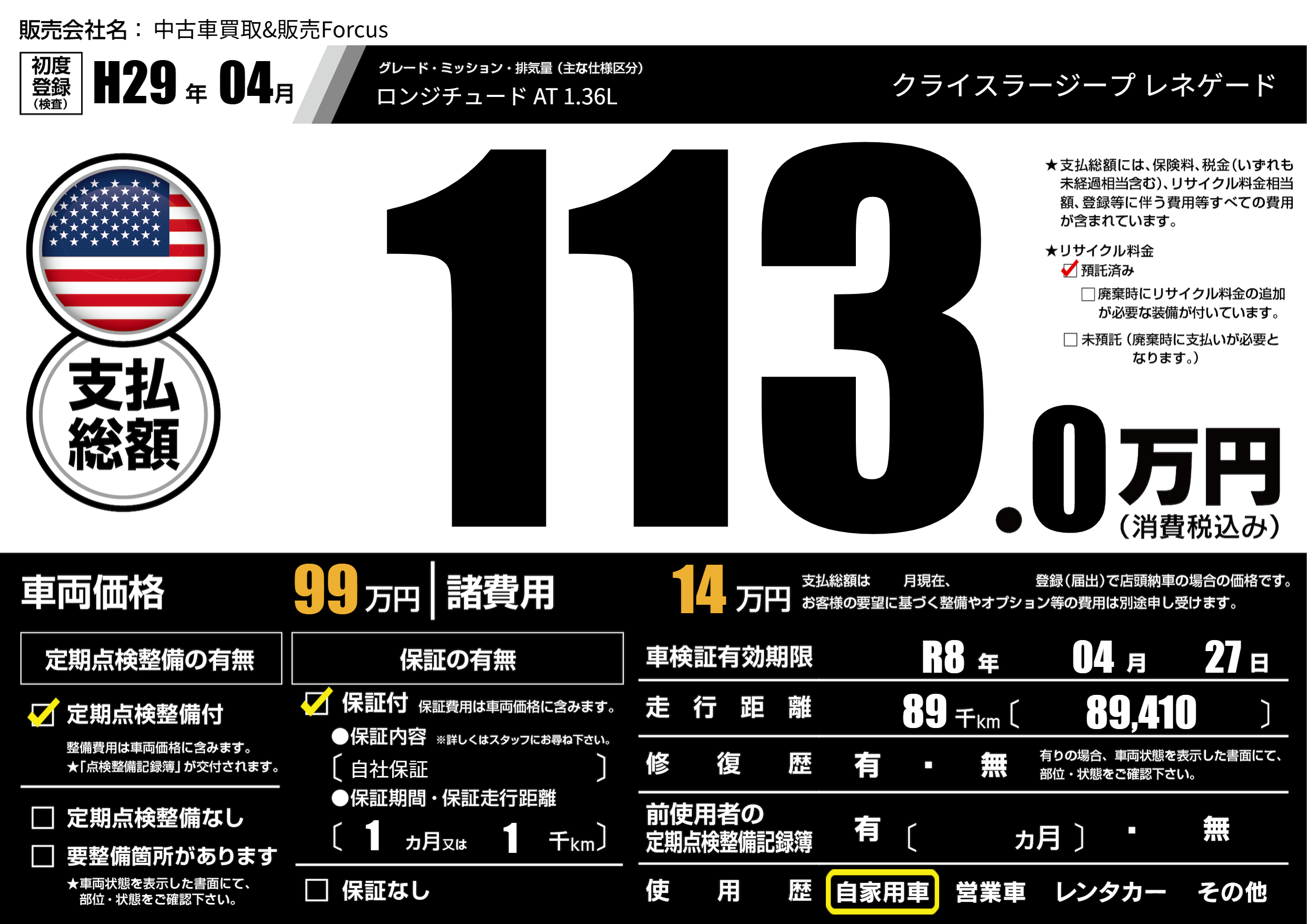 なし | 車検制限 | R8年04月27月 |