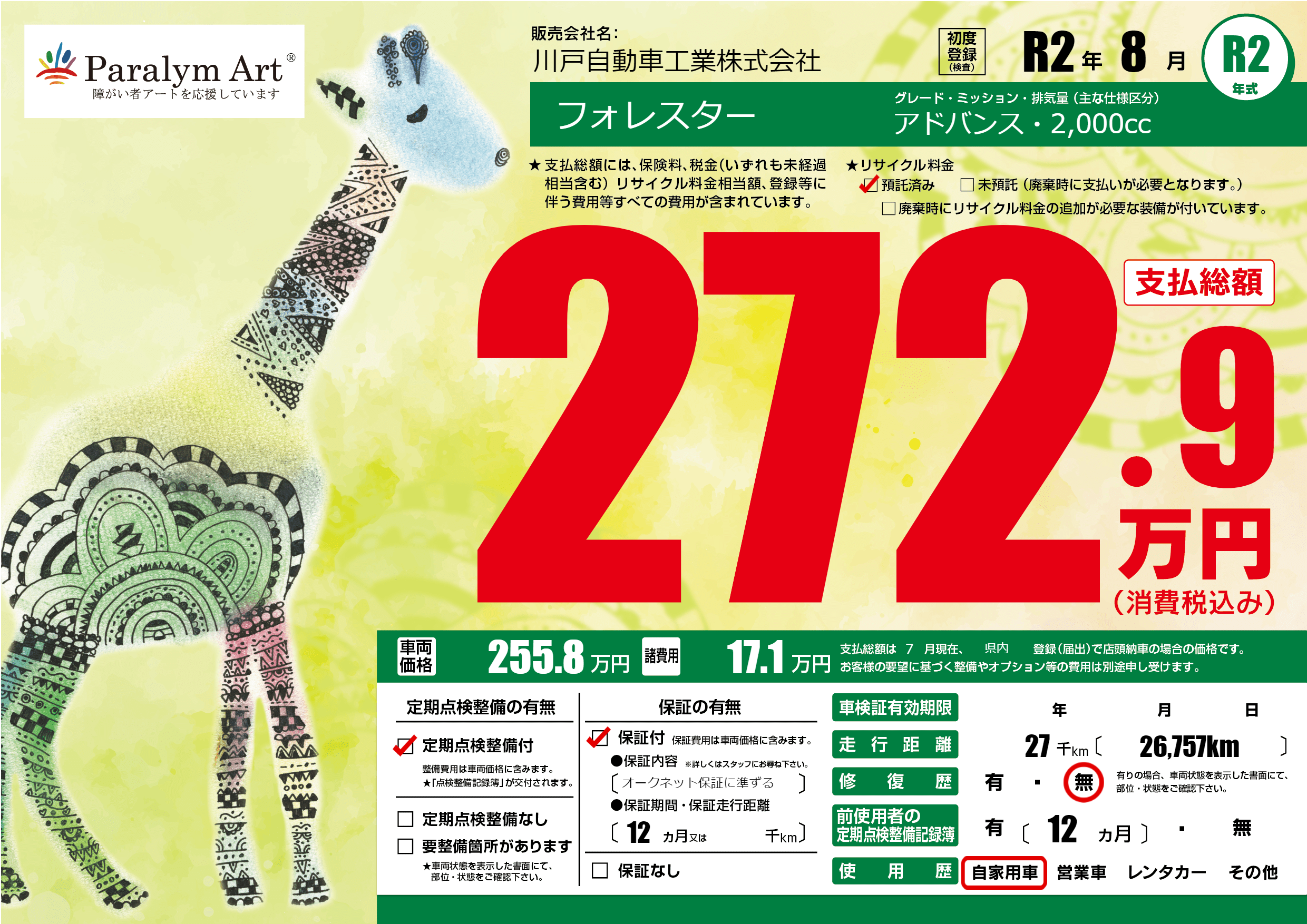 | 走行キロ | 2.7万km | ||