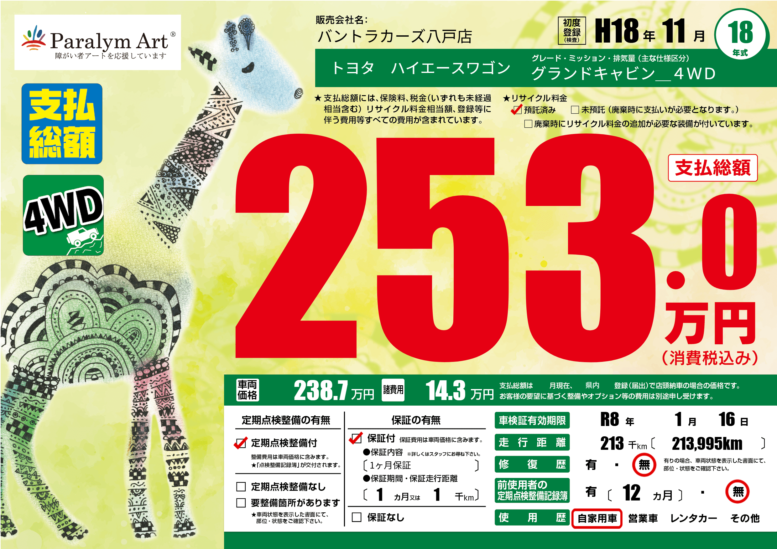 | 走行キロ | 21.3万km | 初年度登録 | H18年11月 |